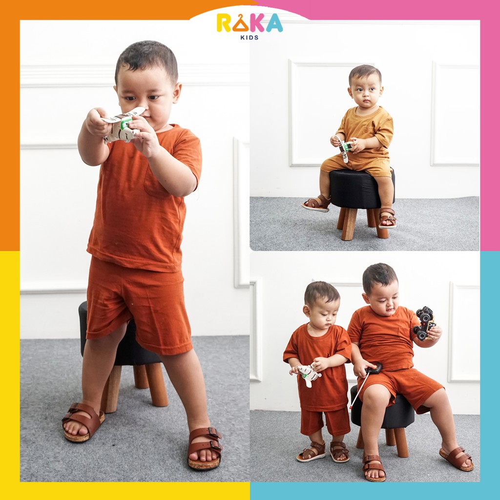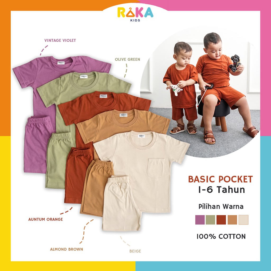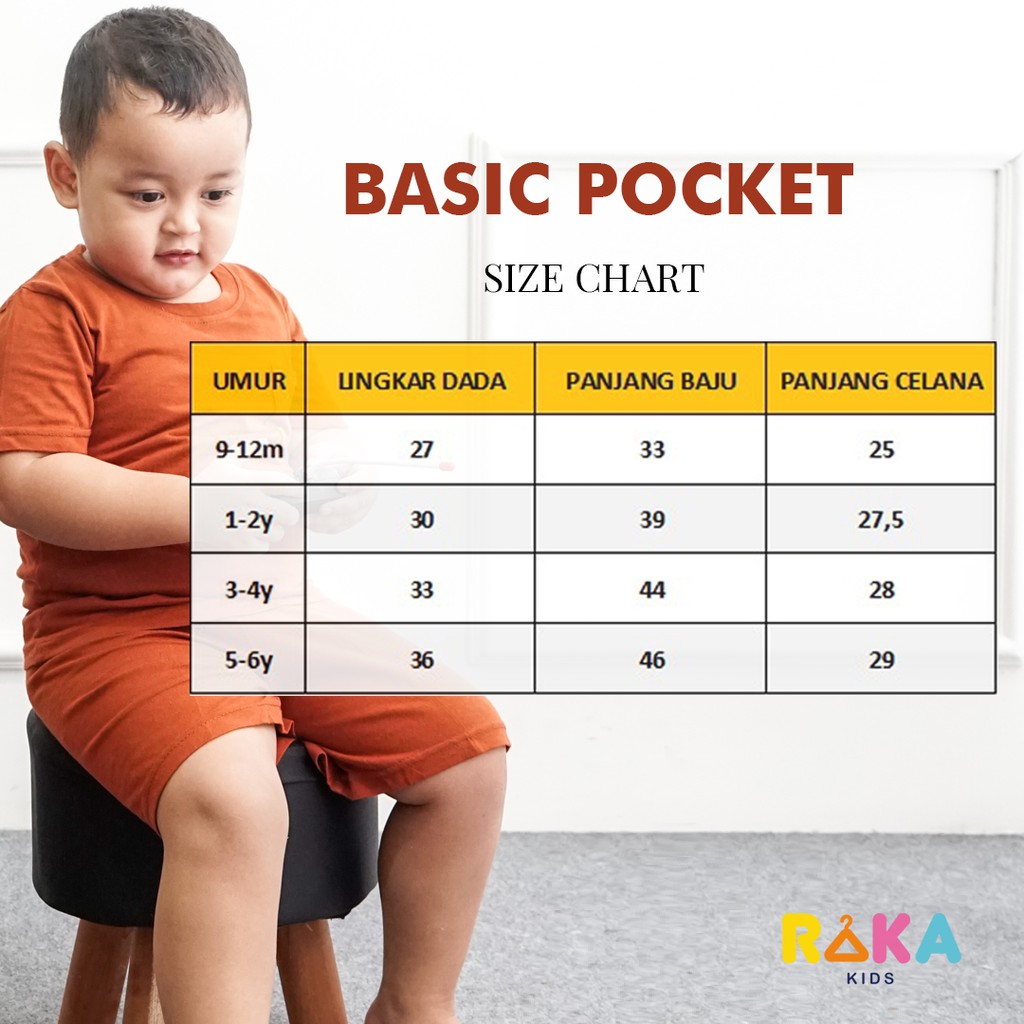 RakakidsID Basic Pocket Tee Setelan Polos Anak Laki-Laki dan Perempuan Usia 1-6 Tahun Cotton Combed 30s