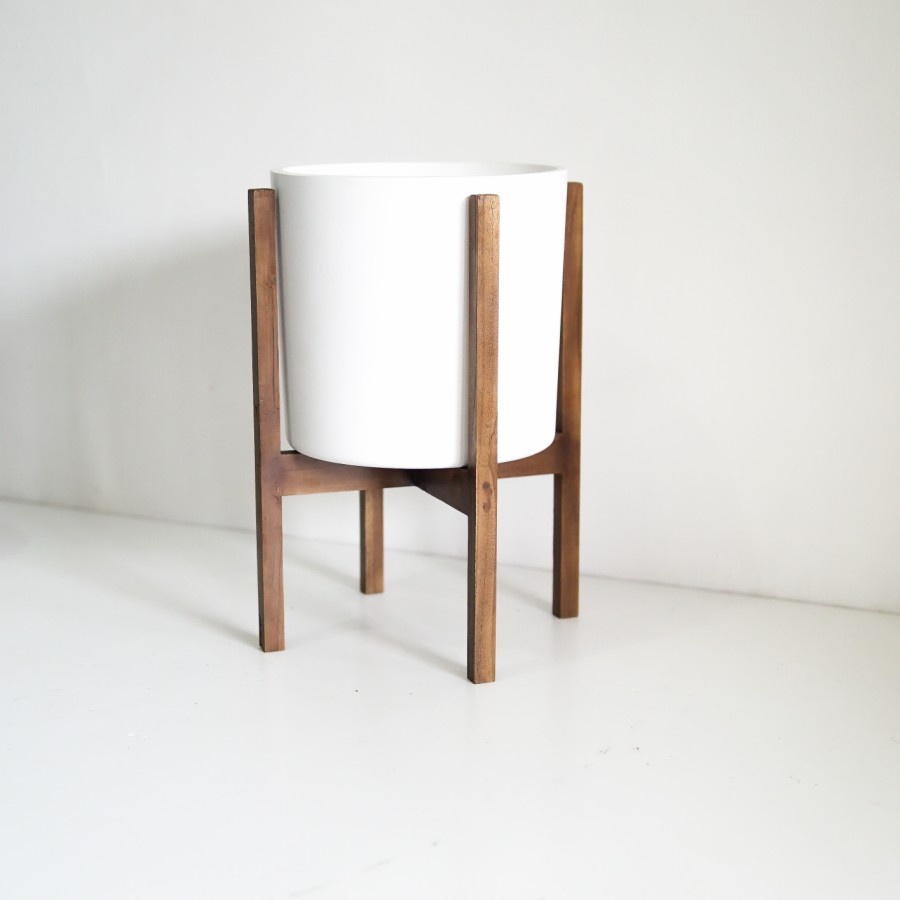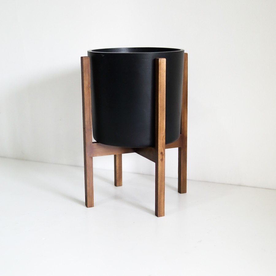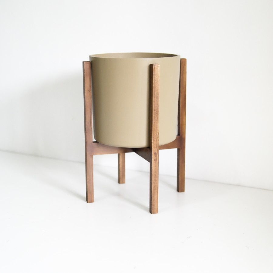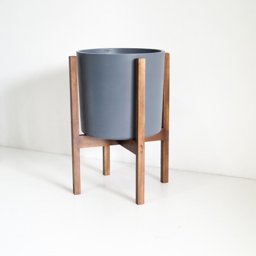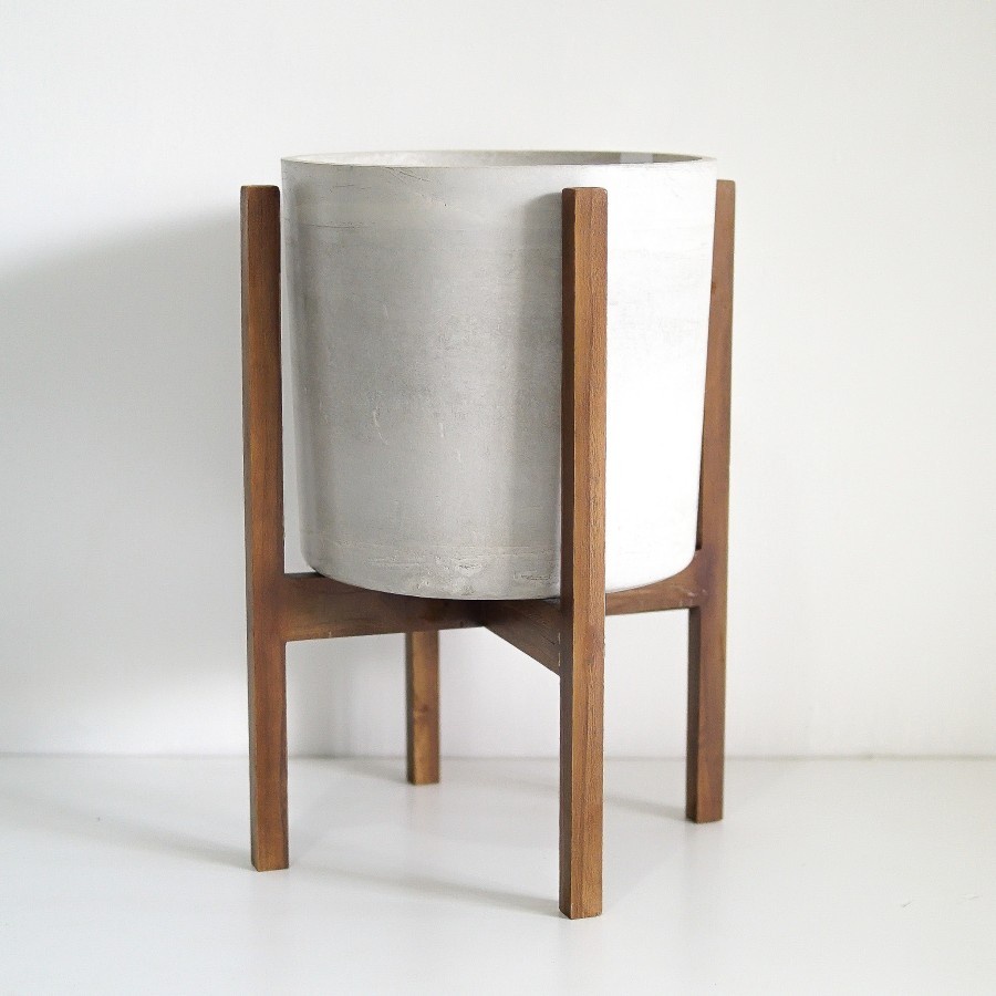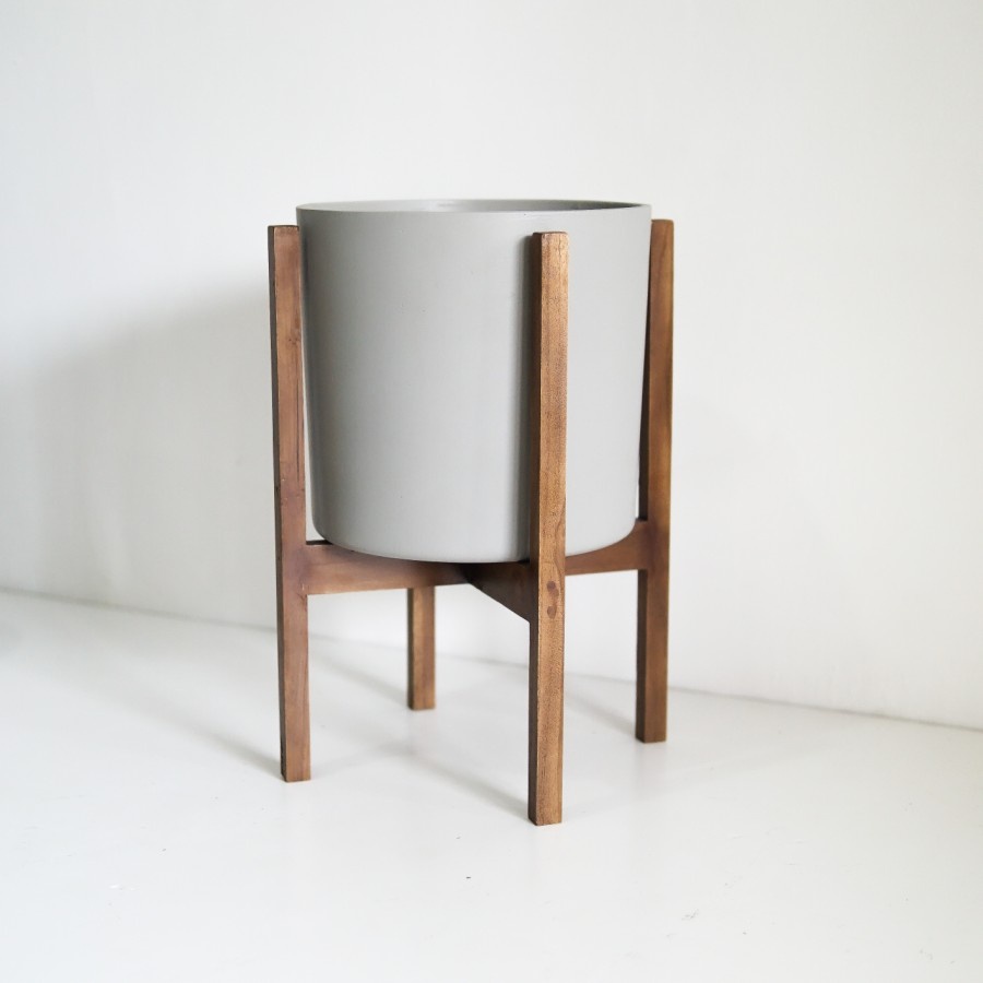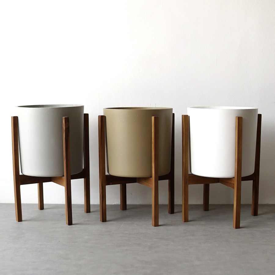 SIGNATURE CONCRETE POT 28cm CYLINDER + JATI STANDING | Pot Bunga / Pot Tanaman / Pot Concrete / Pot Semen