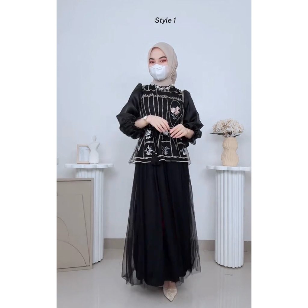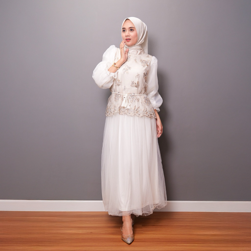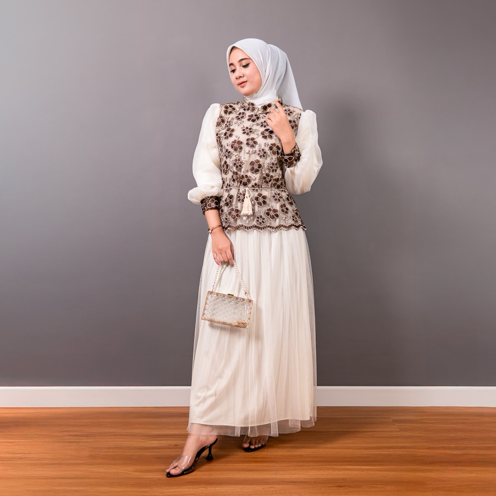 CLOTIVA - Melly Dress Brokat Mewah bahan tille & Organza | Dres Lebaran | Dres Kondangan