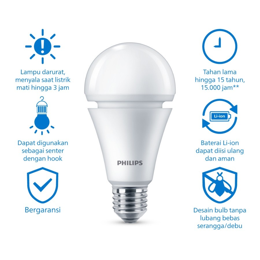 Beli 2 Philips Lampu Emergency Rechargeable 13W 6500k Putih Gratis 2 Lampu LED 13W 6500k Putih