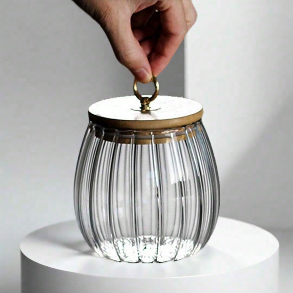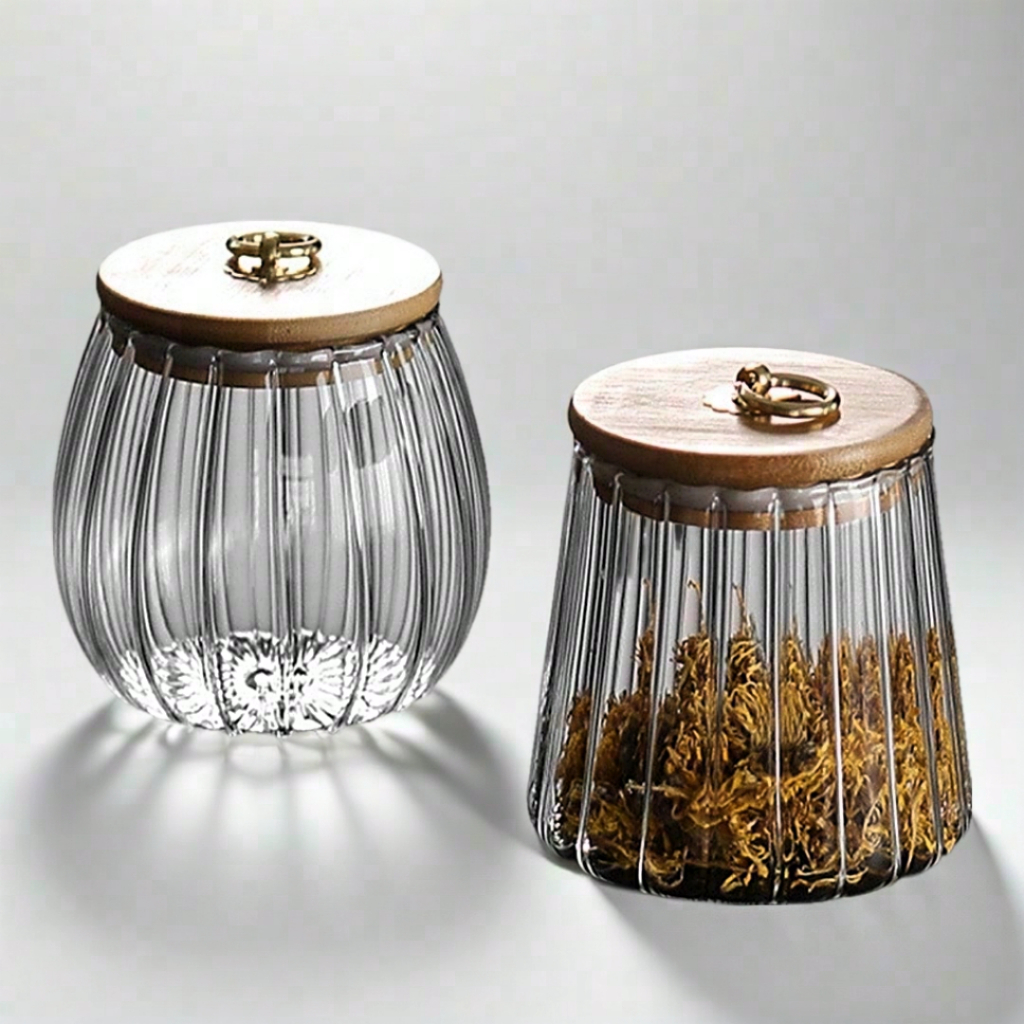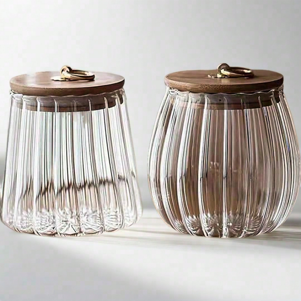 Toples Kaca Bergaris dengan Tutup Wadah Penyimpanan Bumbu Teh Kopi Kue Kedap Udara