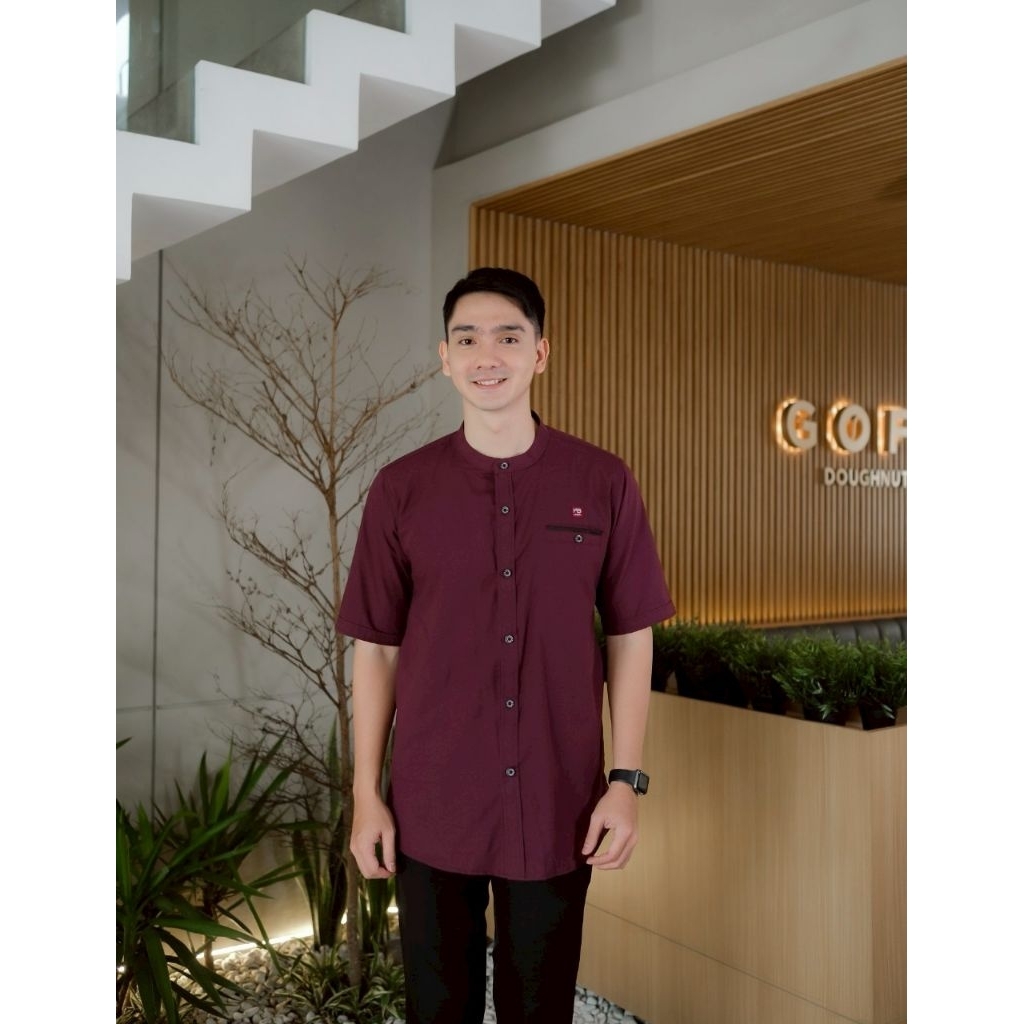 Baju Koko Pria Lengan Pendek / Koko Pria / Kurta Warna Burgundy / Koko Burgundy / Fashion Muslim Pria