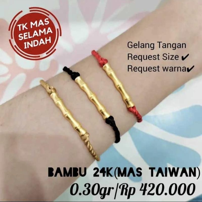 Gelang Tali Lilit Bambu Tulang 24K/Mas Taiwan