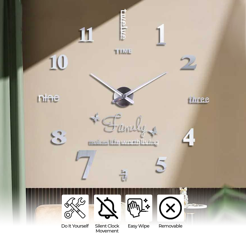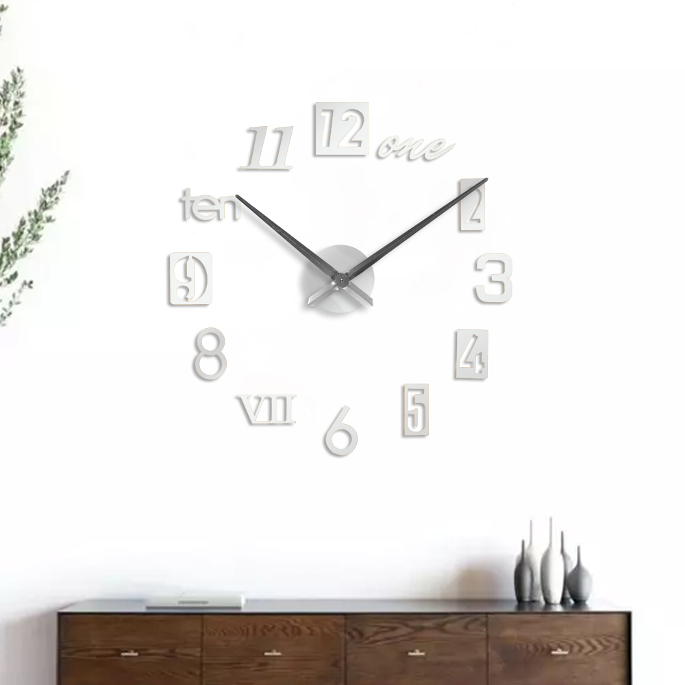 Jam Dinding 3D DIY Giant Wall Clock Diameter 80-130cm Tempel Besar Huruf Angka Jumbo Estetik