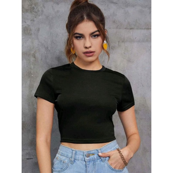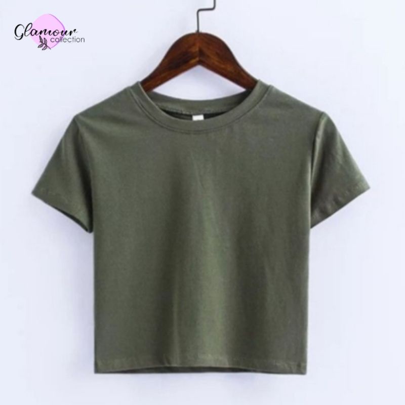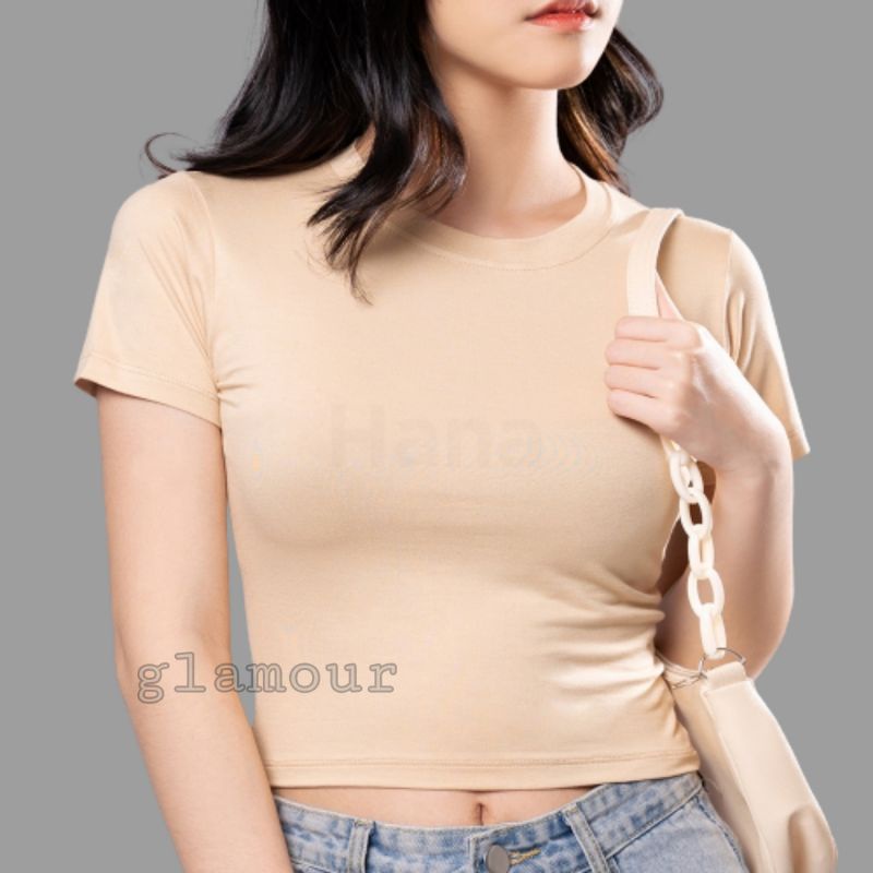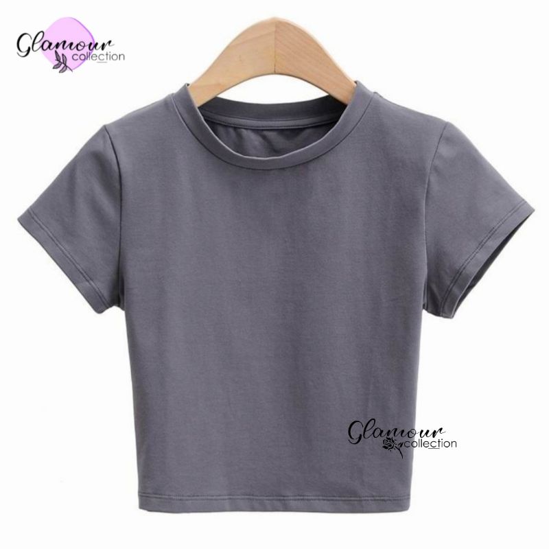 Glamstudio - Crop Top Polos Kaos Crop Tee Wanita Slim fit ( CT 001 (2) )