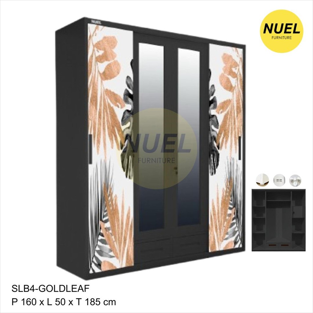NUEL Lemari Baju / Pakaian Sliding 4 Pintu Besi Lebar 160 SL4B