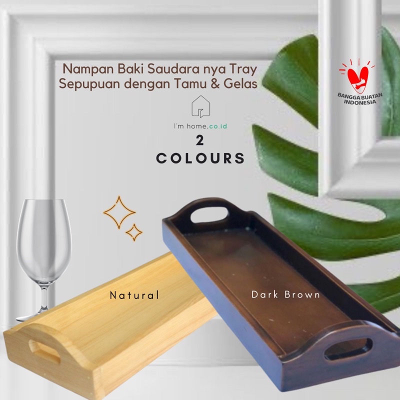 Baki kayu Nampan kayu Natural & Dark brown perabot kayu peralatan rumah tangga tray kayu coklat tua cofee tray coffee kerajinan perabot kayu dapur aesthetic rumah perabot lucu kayu mahoni jati natural alami rustic aesthetic estetik baki tamu imhome lokal