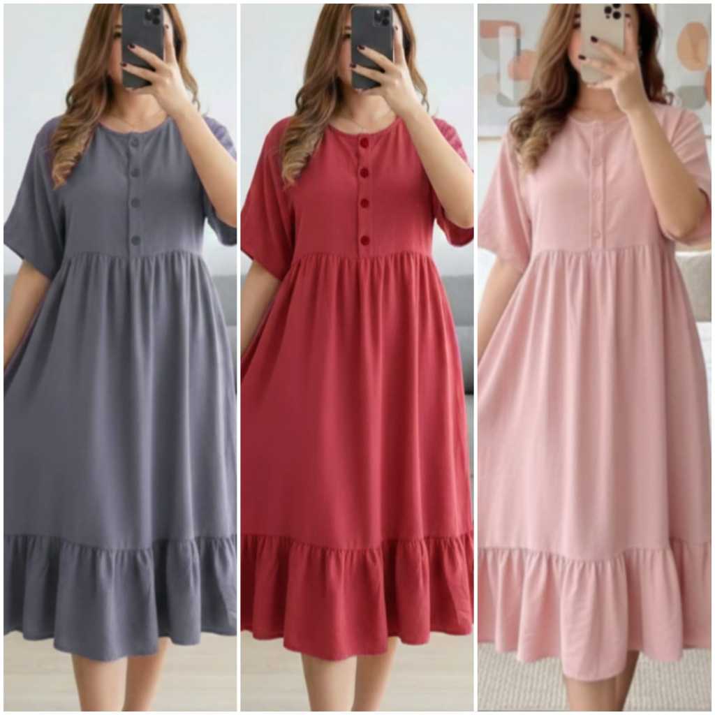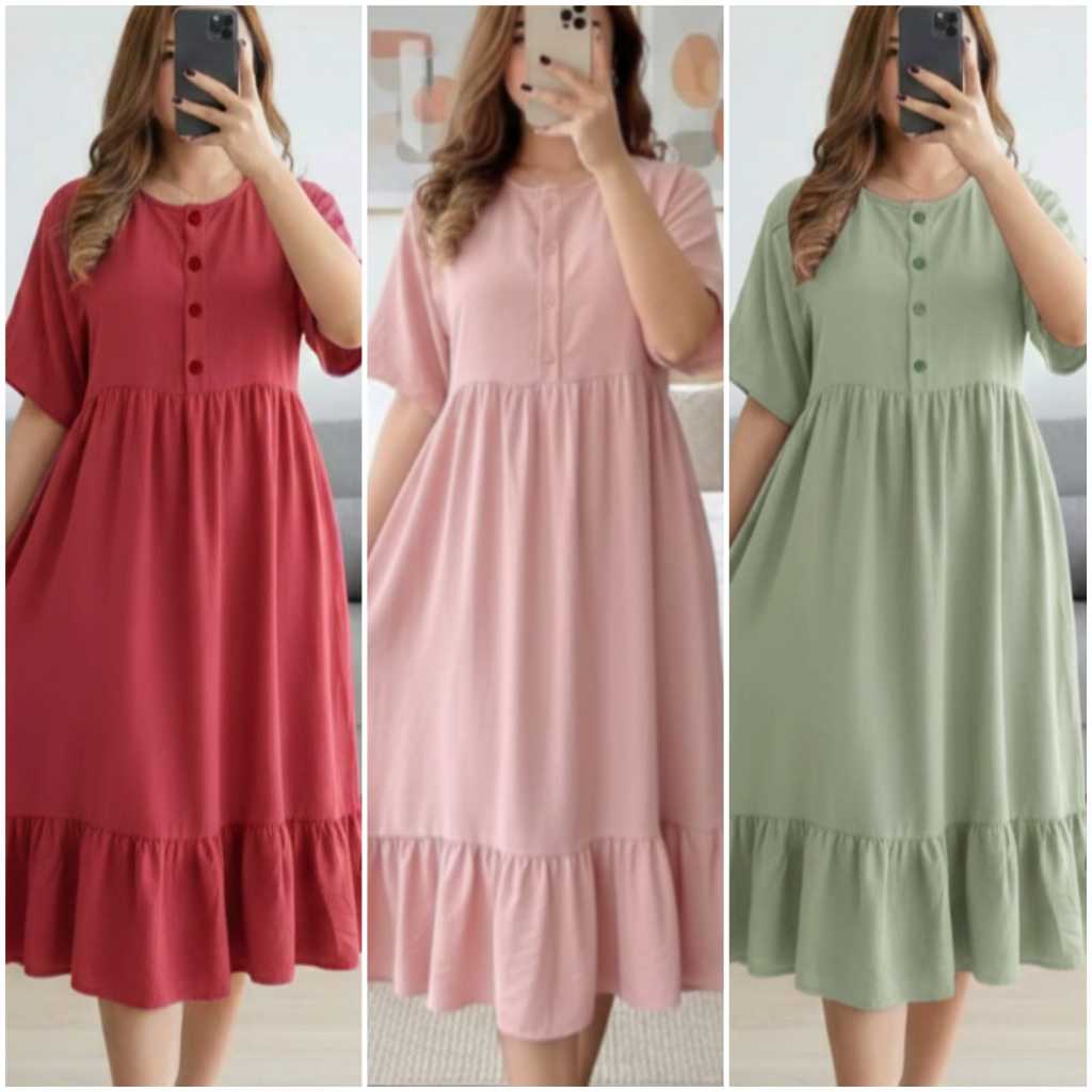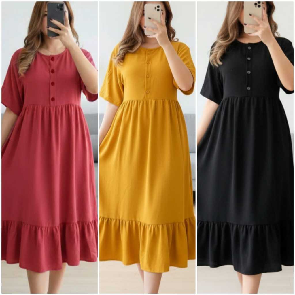 Paket Isi 3 Pcs Dress Mahalini Daster Tiktok Kancing Depan Midi Wanita Murah 100 ribu dapat 3