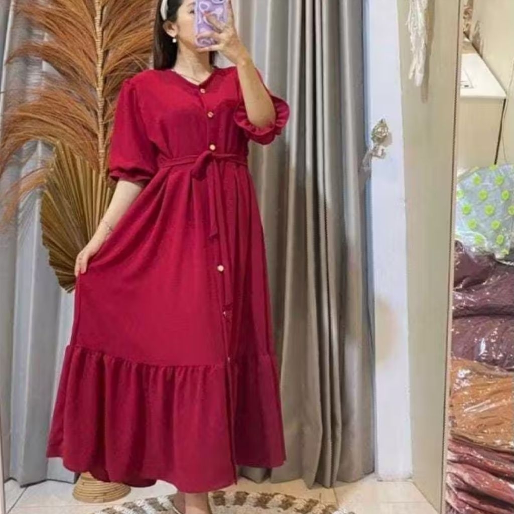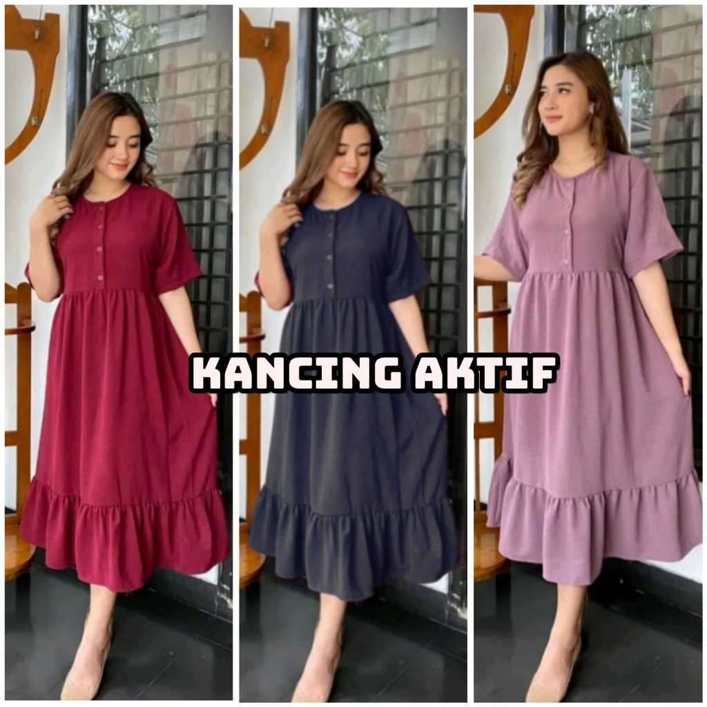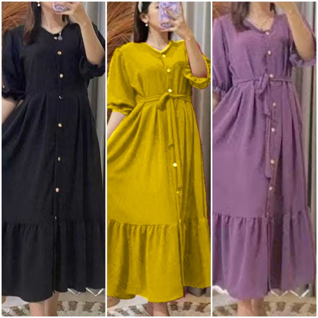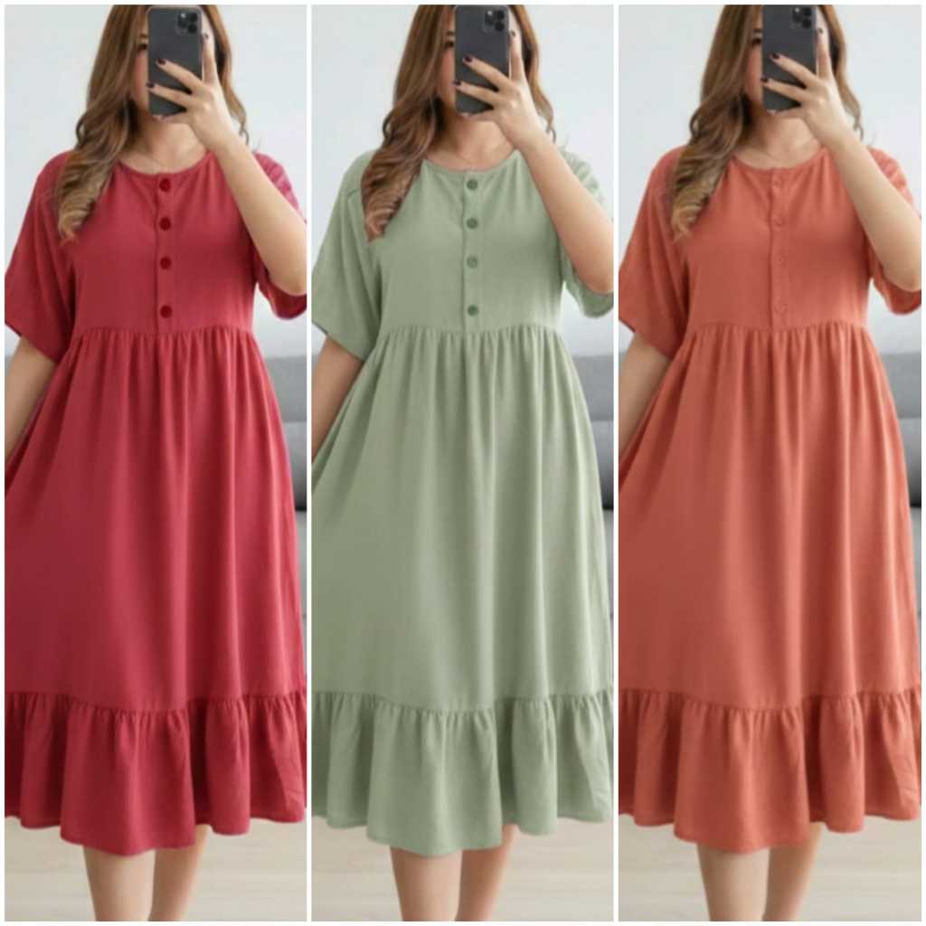 Paket Isi 3 Pcs Dress Mahalini Daster Tiktok Kancing Depan Midi Wanita Murah 100 ribu dapat 3
