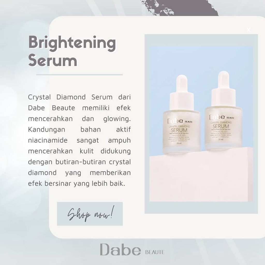 Dabe Beaute Crystal Diamond Serum 20ml l Brightening Serum Pencerah Niacinamide (FREE MASKER BIBIR)