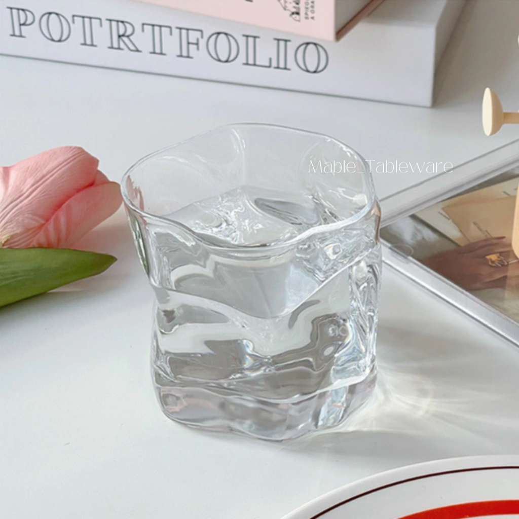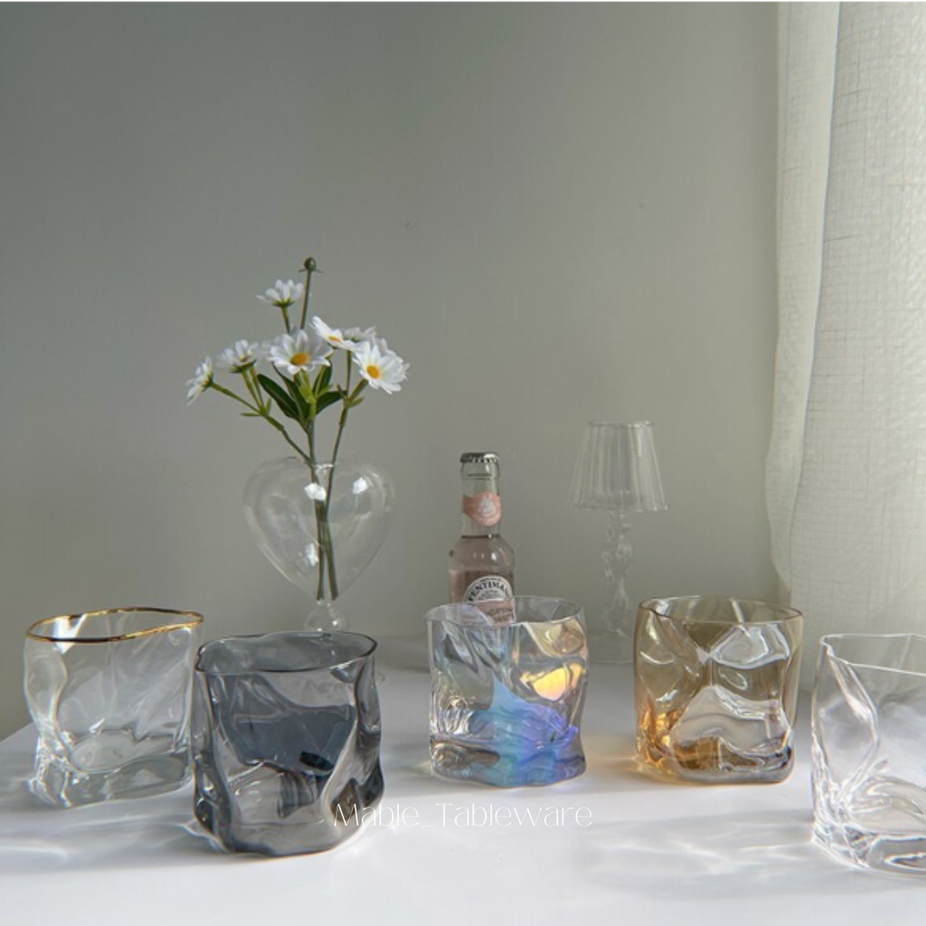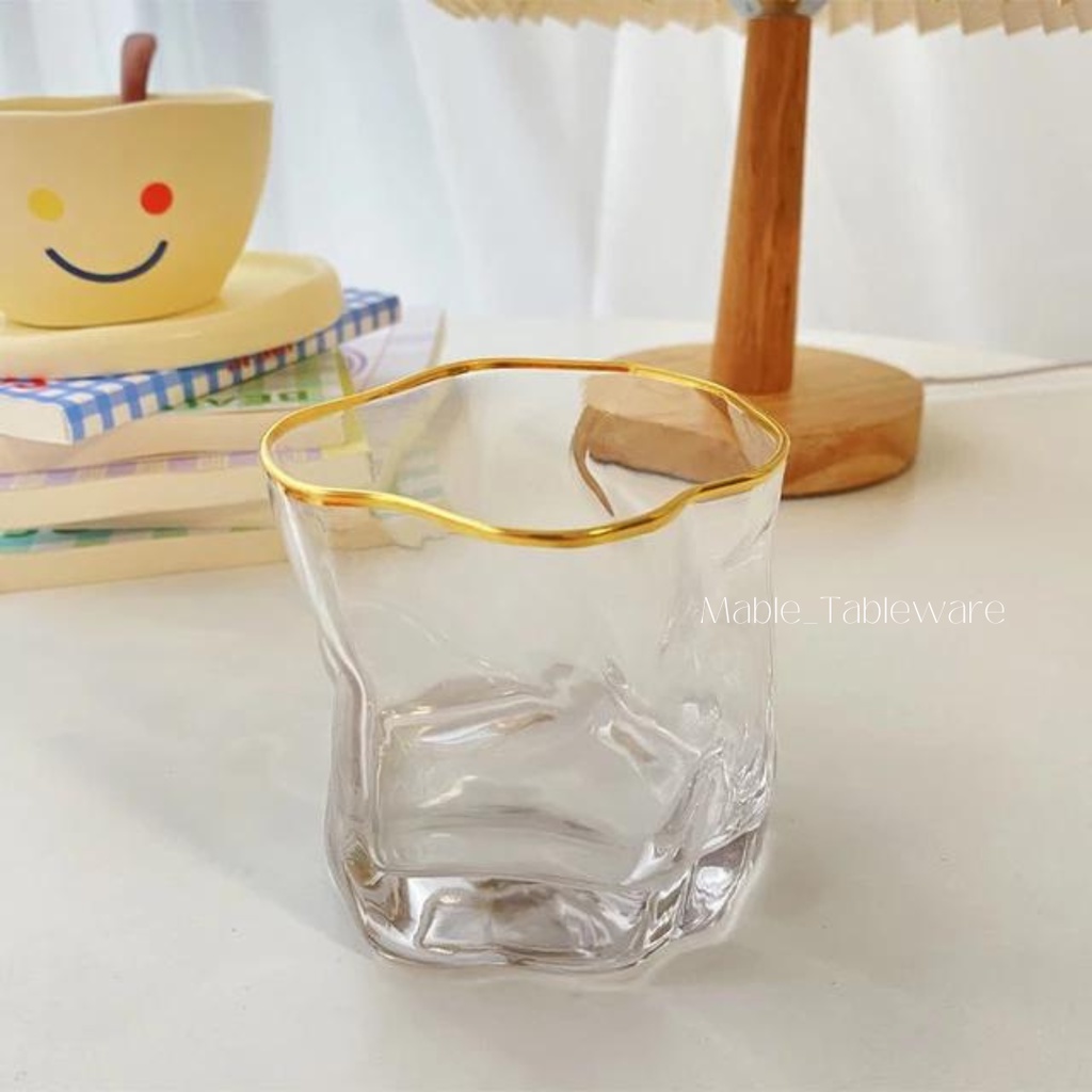 Cielo Drinking Glass/ Gelas Minum Kaca Aesthetic Korea Motif Abstrak Estetik Mable Tableware / Gelas Mojito Milkshake Milktea Thai Tea Green Tea Coffee Tea Nordic Crystal Twisted Irregular Drinking Glass Cup Gold Line Cafe Murah Grosir BTS Army Blackpink