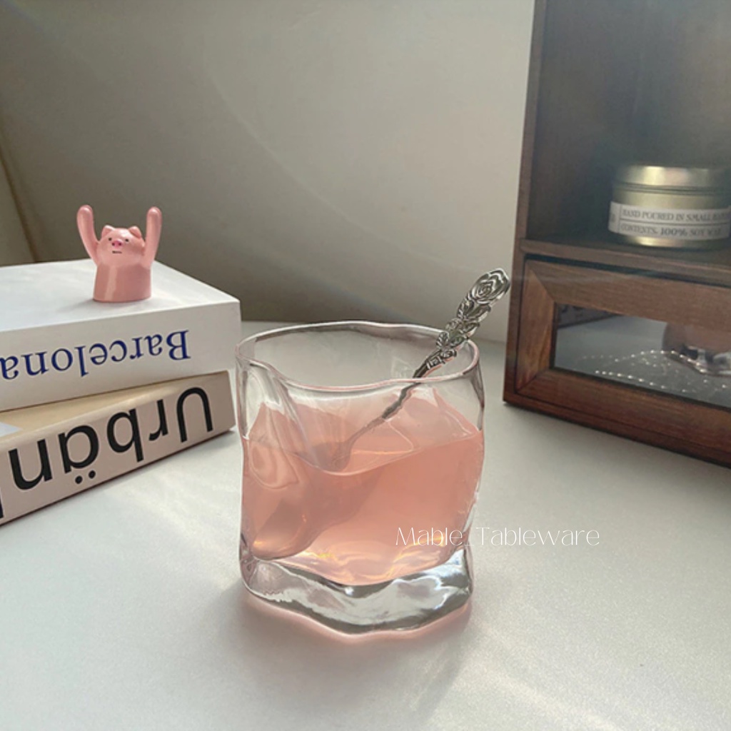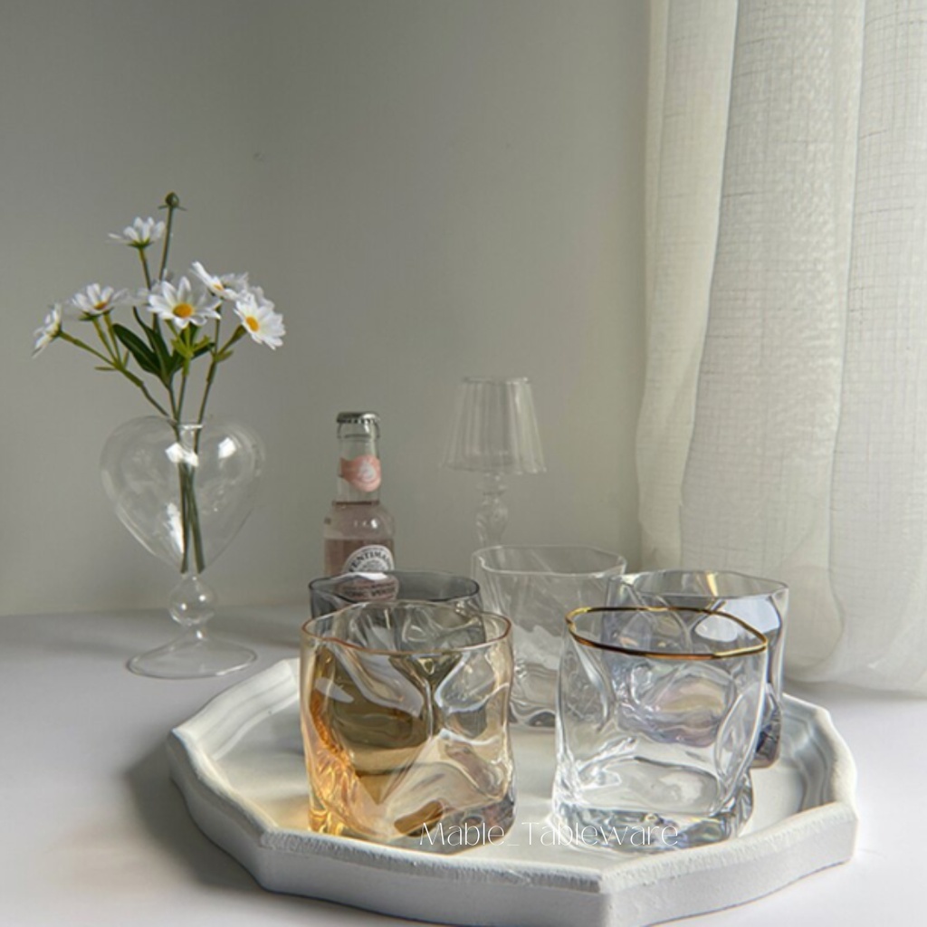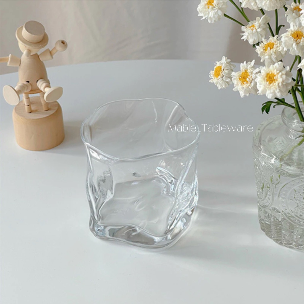 Cielo Drinking Glass/ Gelas Minum Kaca Aesthetic Korea Motif Abstrak Estetik Mable Tableware / Gelas Mojito Milkshake Milktea Thai Tea Green Tea Coffee Tea Nordic Crystal Twisted Irregular Drinking Glass Cup Gold Line Cafe Murah Grosir BTS Army Blackpink