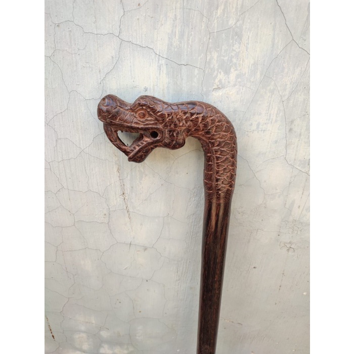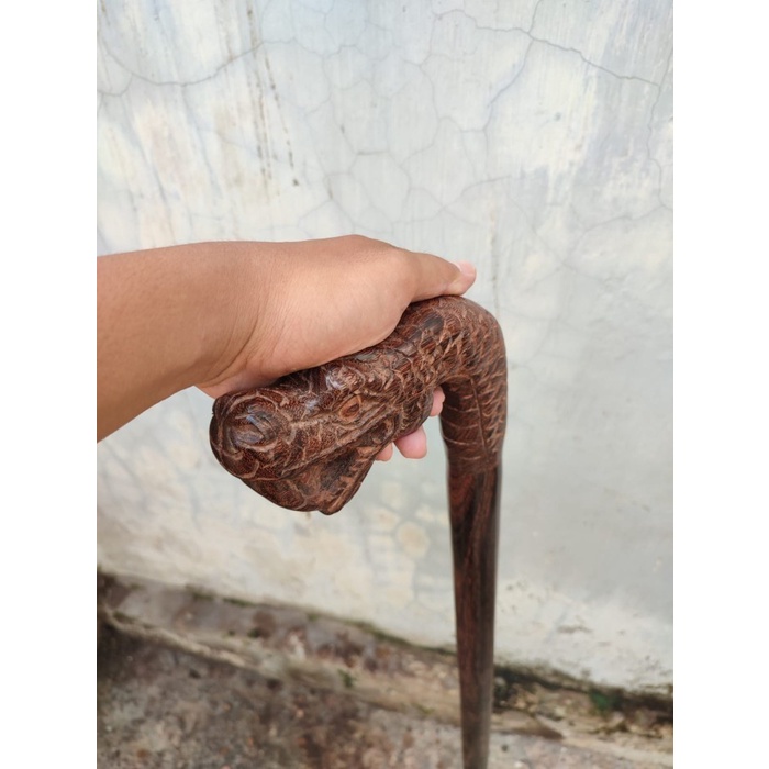 Tongkat Jalan Kayu Galih Asem Ukir Ular Kualitas Premium