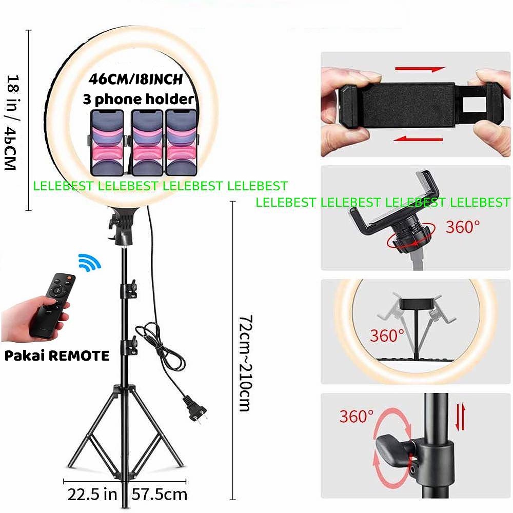 Ring light 46cm + Light Stand Tripod 2.1 Meter Make Up Live Streaming Ringlight jumbo