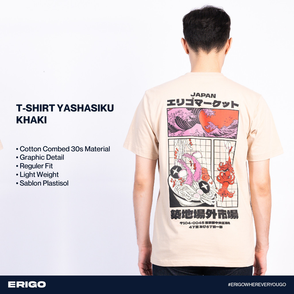 Erigo T-Shirt Yashasiku Khaki - Kaos Unisex