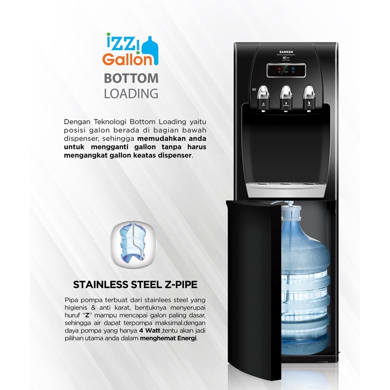 Sanken Dispenser Galon Bawah HWD-C523IC Hitam Bottom Loading