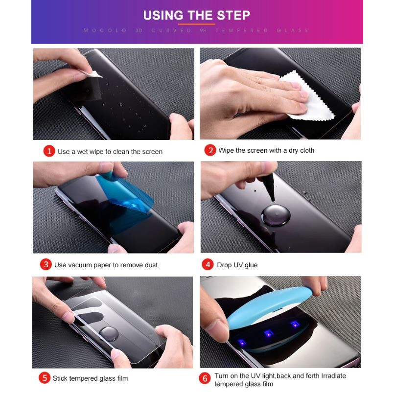 Mocolo Samsung Note 8 Note 9 UV Liquid Glass 3D Tempered Glass Full Cover Edge Guard