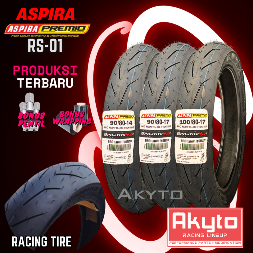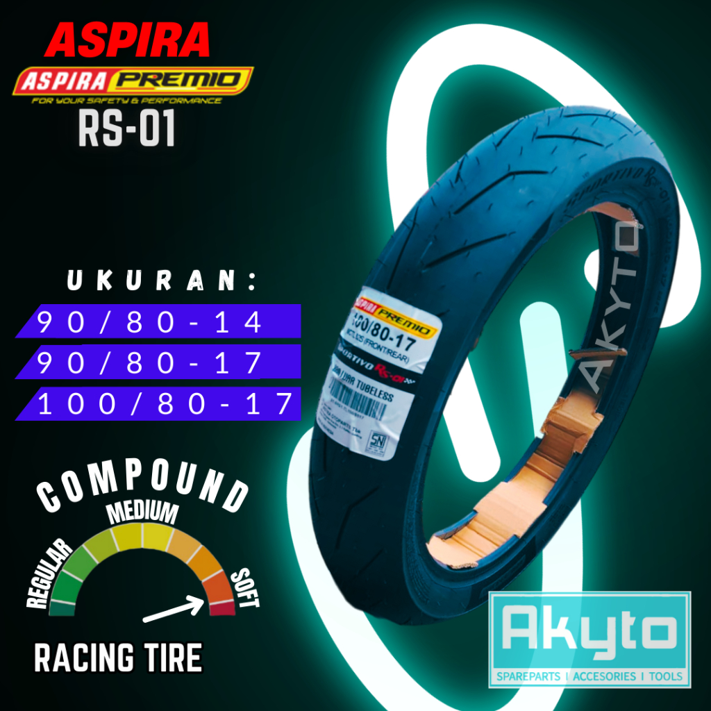 [PRODUKSI TERBARU] BAN RACING SOFT COMPOUND / ASPIRA PREMIO RS-01 R14 R17 / FREE PENTIL / BAN TUBELESS / BAN MOTOR BALAP BEAT VARIO MIO MATIC METIK BALAP / BEBEK FIZ R JUPITER SONIC SATRIA KING (90/80-14 90/80-17 100/80-17) RS01 SPRTV2 MP27