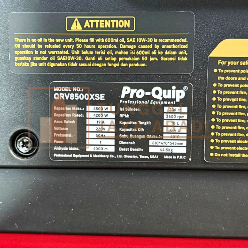 Genset Silent Inverter ProQuip USA QRV8500XSE - 4500 Watt