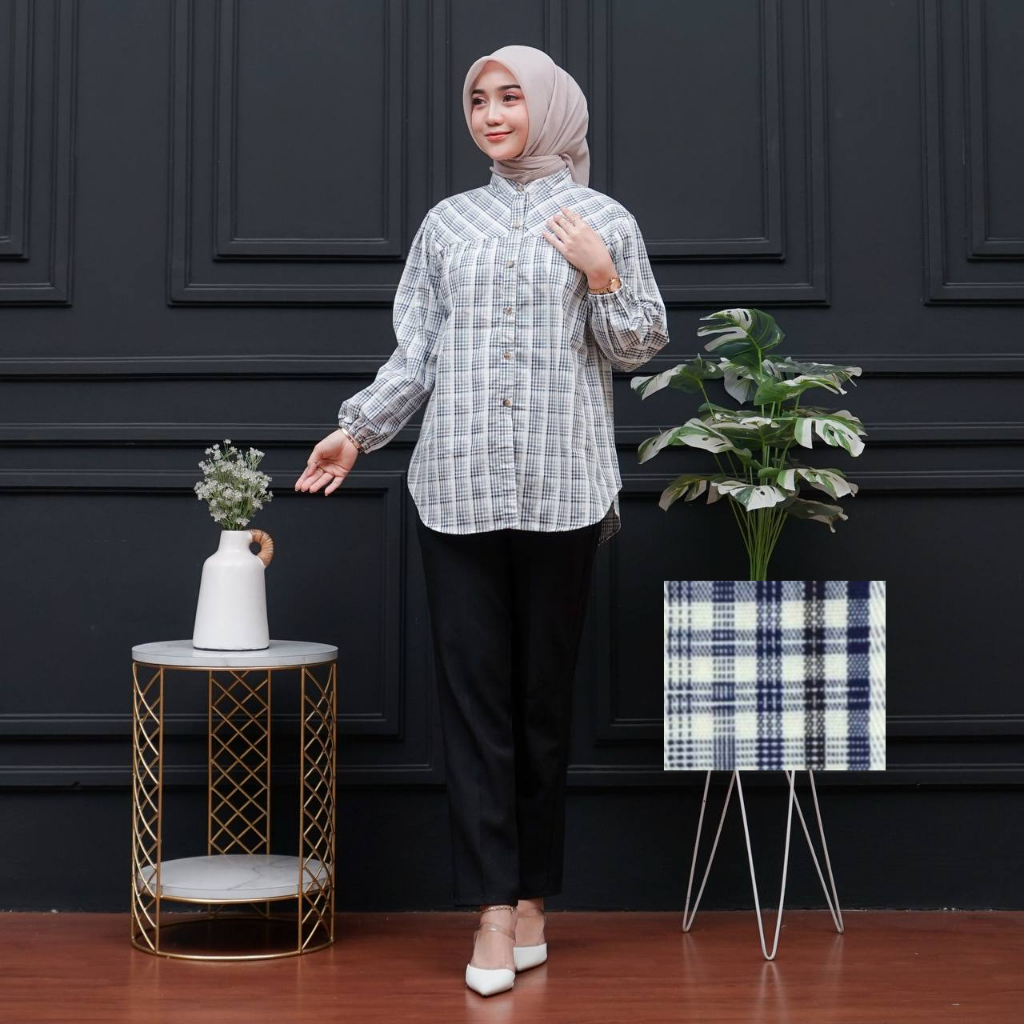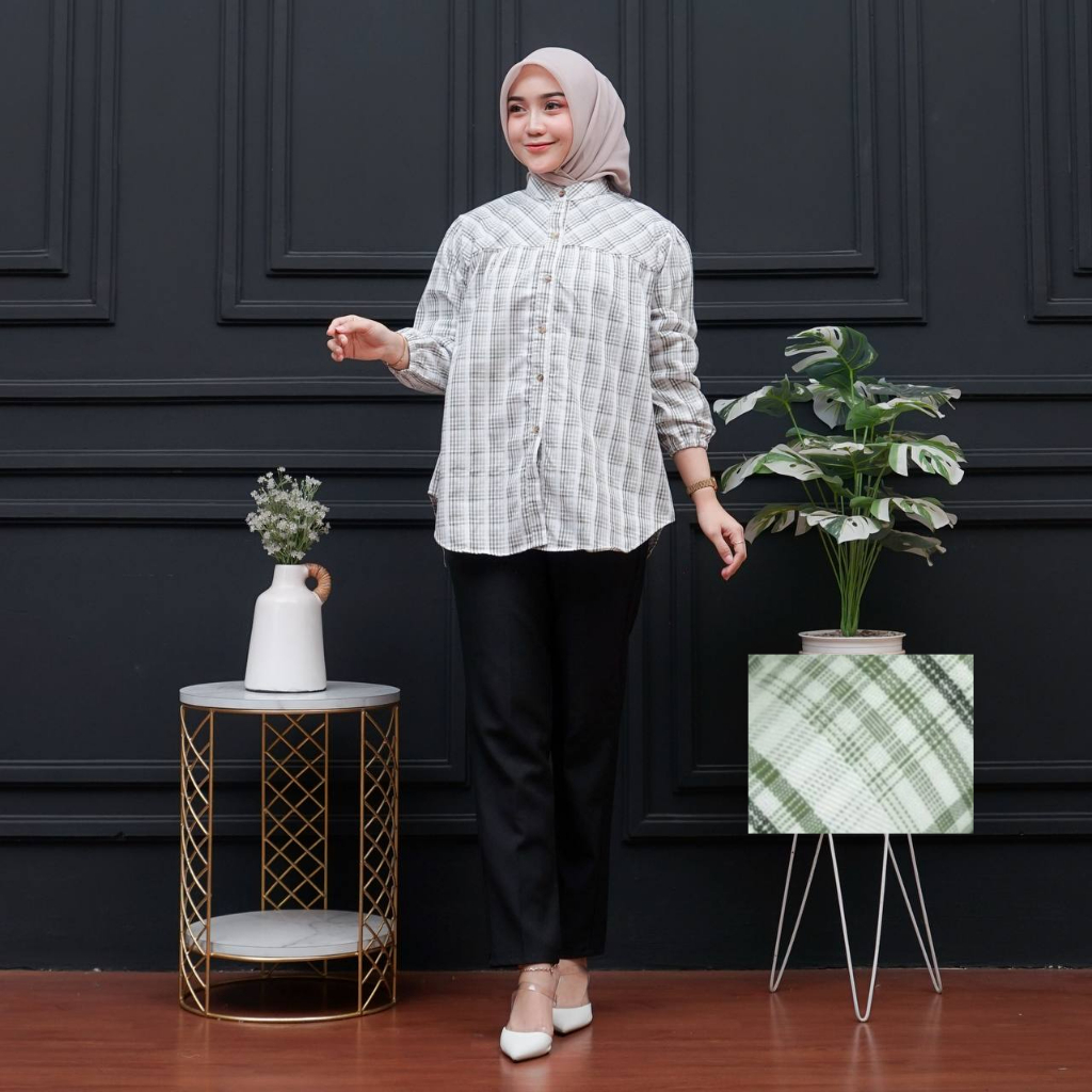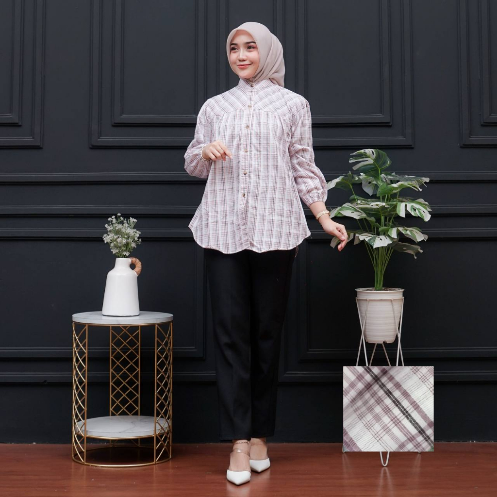 Tiara Blouse Motif Katun Haruka Premium Twill Kemeja Atasan Kancing Wanita Dewasa Muslim Kotak Panjang Casual Remaja