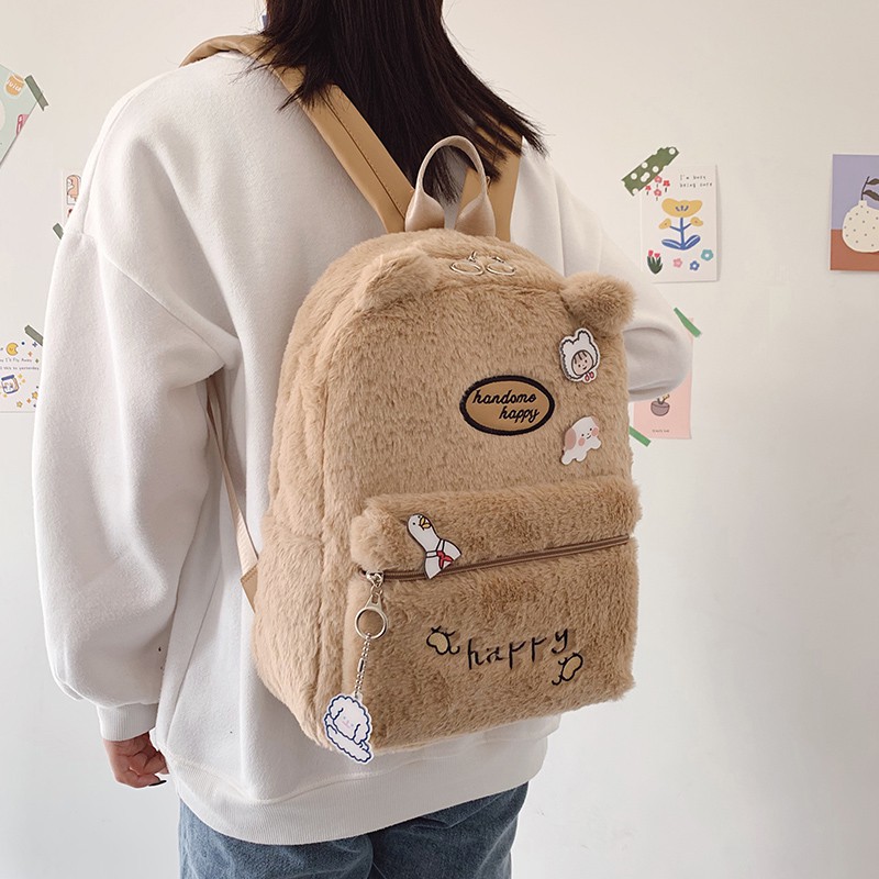WYK84 TAS WANITA TAS RANSEL WANITA BULU HALUS RANSEL TAS SEKOLAH WANITA TAS KULIAH WANITA TKM
