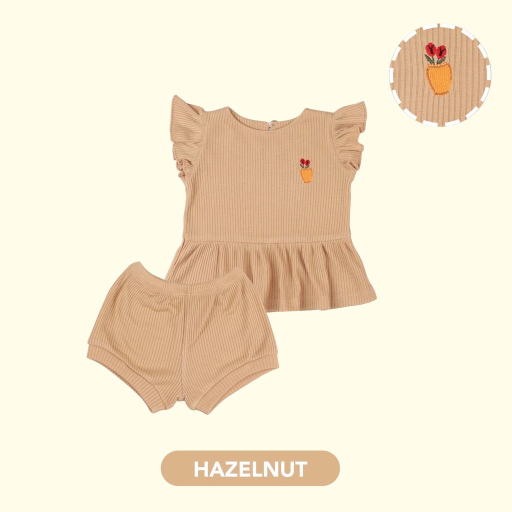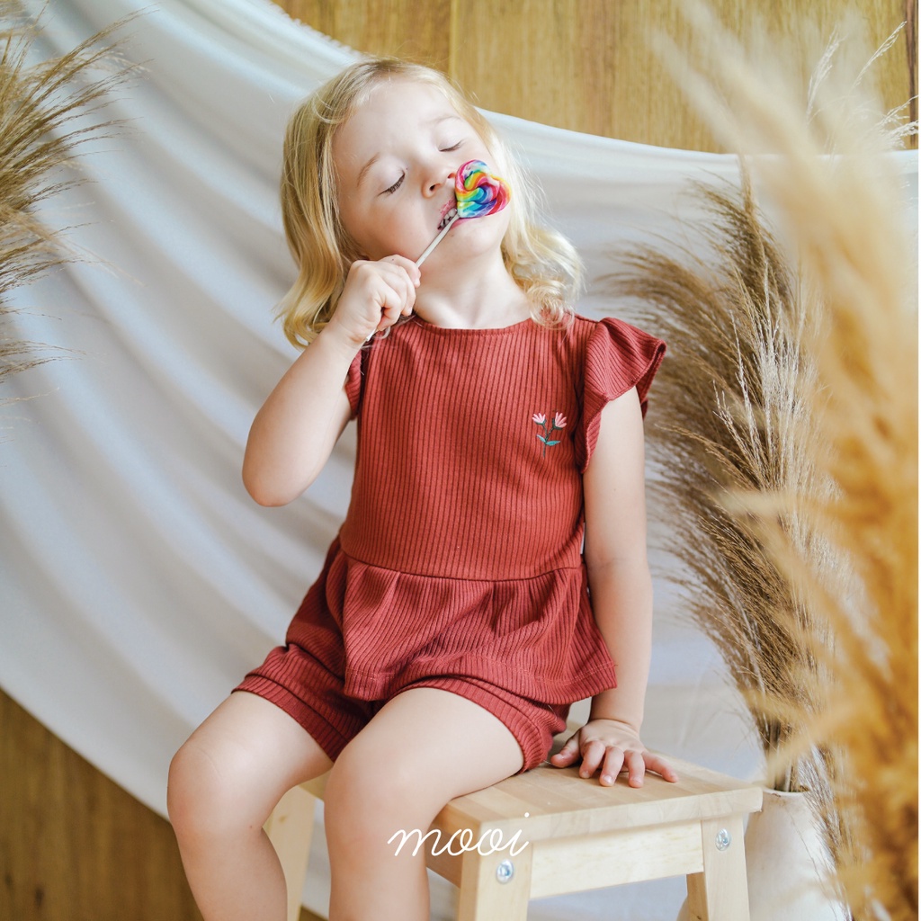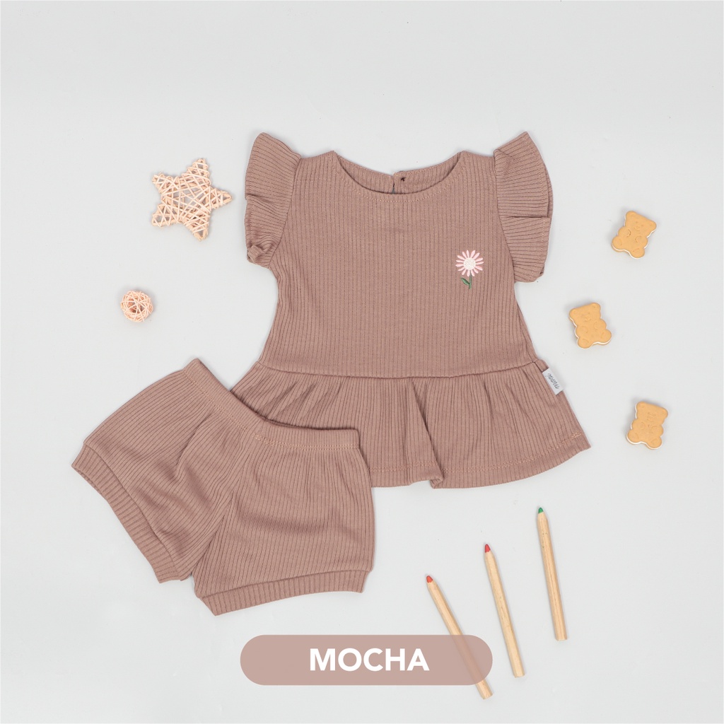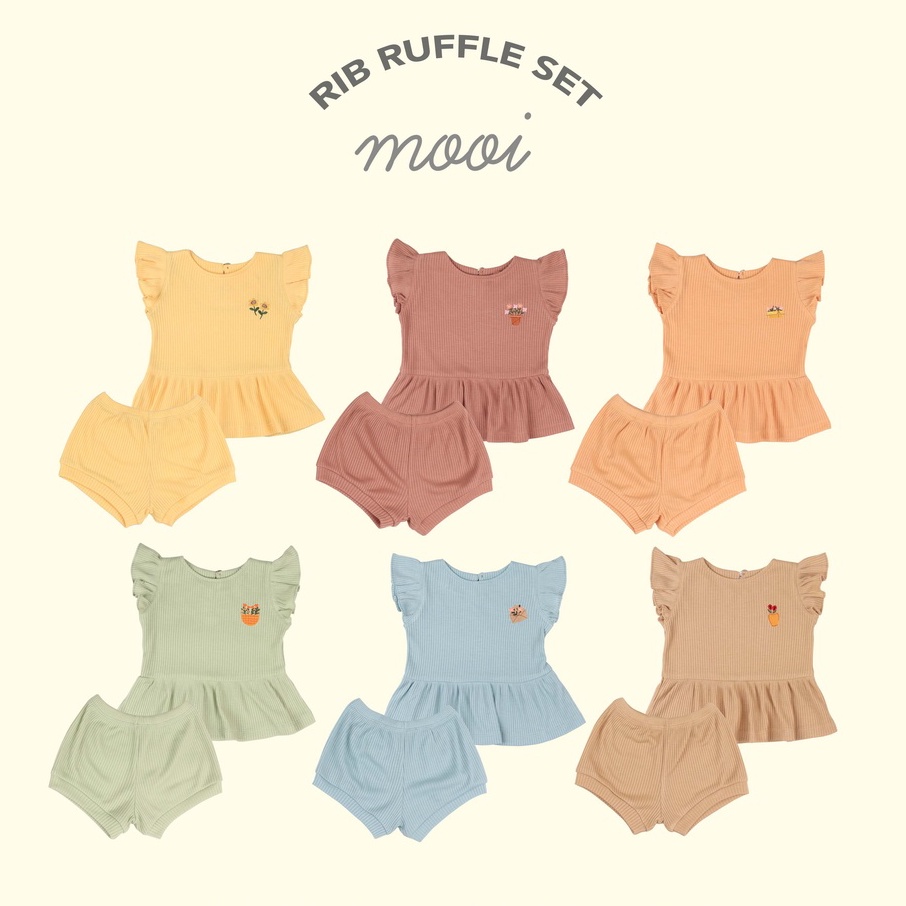 Mooi Setelan Anak Perempuan Rib Ruffle Set