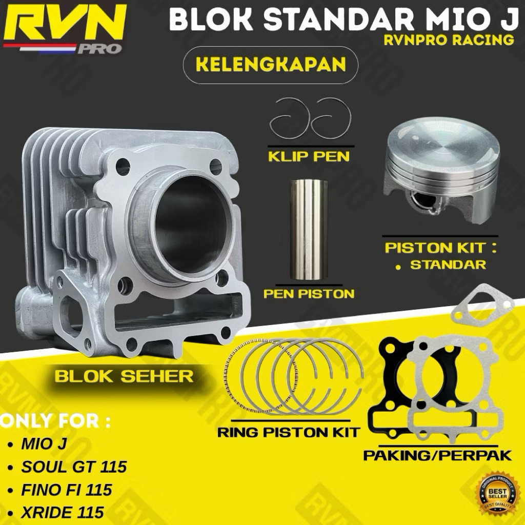 BLOK SEHER KOMPLIT MIO J FINO 115 XRIDE 115 MIO GT 115 SOUL GT 115 ORIGINAL RVN PLUS PISTON KIT SEPAKET FREE PAKEN BLOK ORIGINAL RVN