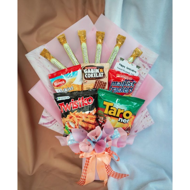 Buket Snack Medium - Custom Warna Bouquet - Murah Snacks - Hadiah Ulang tahun - Wisuda