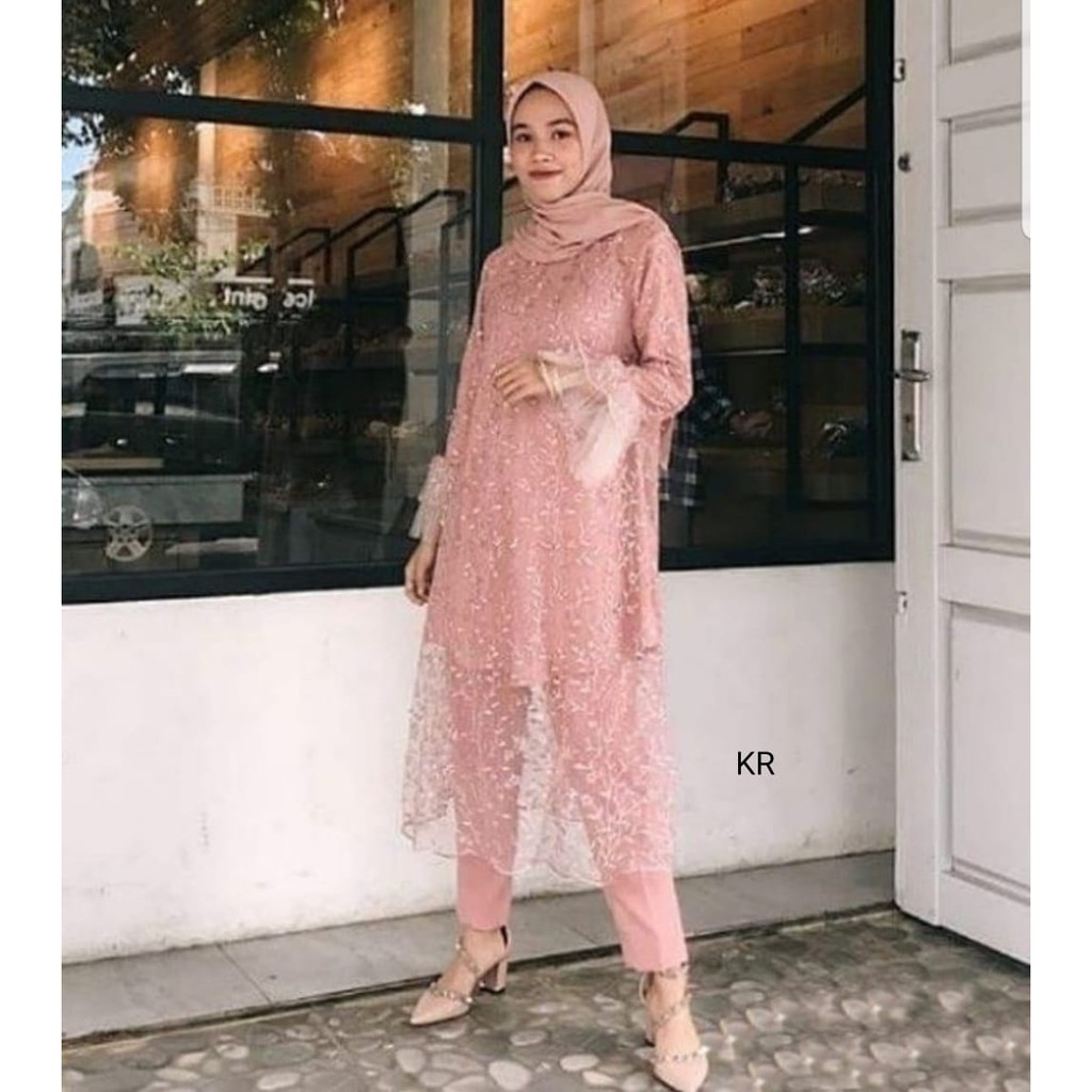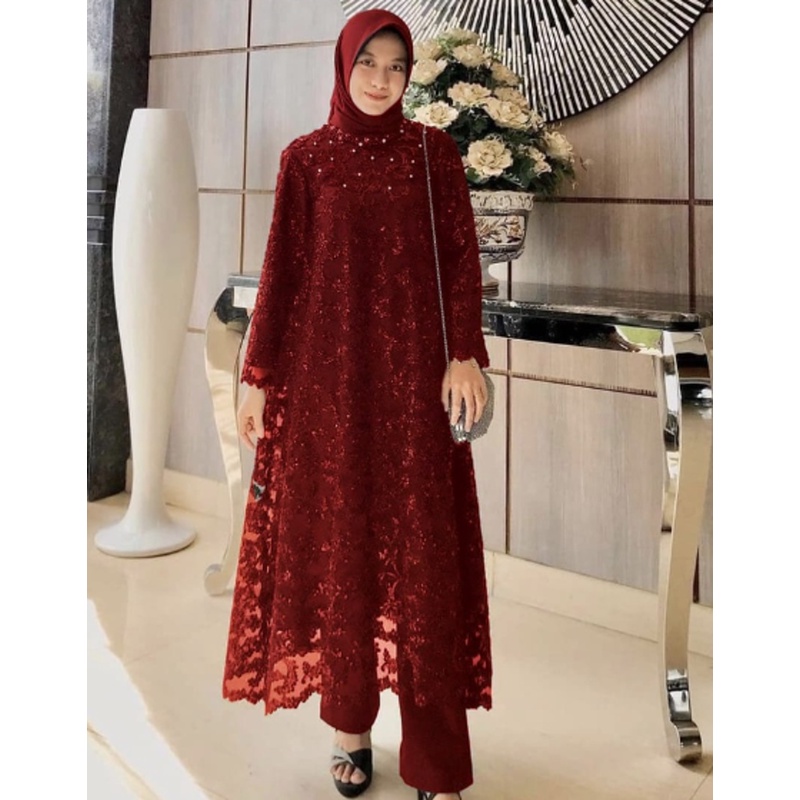 Shalom set setelan baju dan celana kondangan baju kondangan pesta setelan brokat murah Terbaru modis Stelan Sage Green Hijau Sage Wardah Pastel