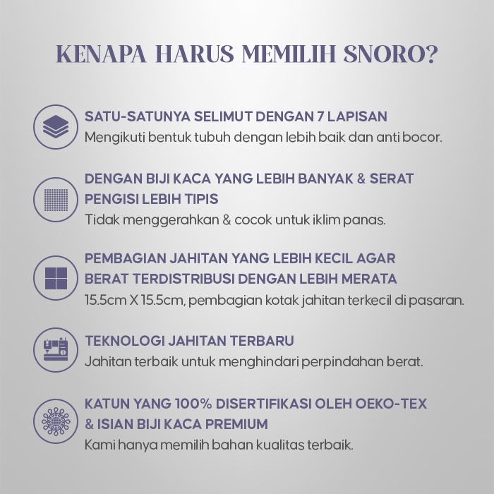 Snoro Selimut Berat Weighted Blanket 7 kg Bahan Microbeads Kaca Premium untuk 1 Orang