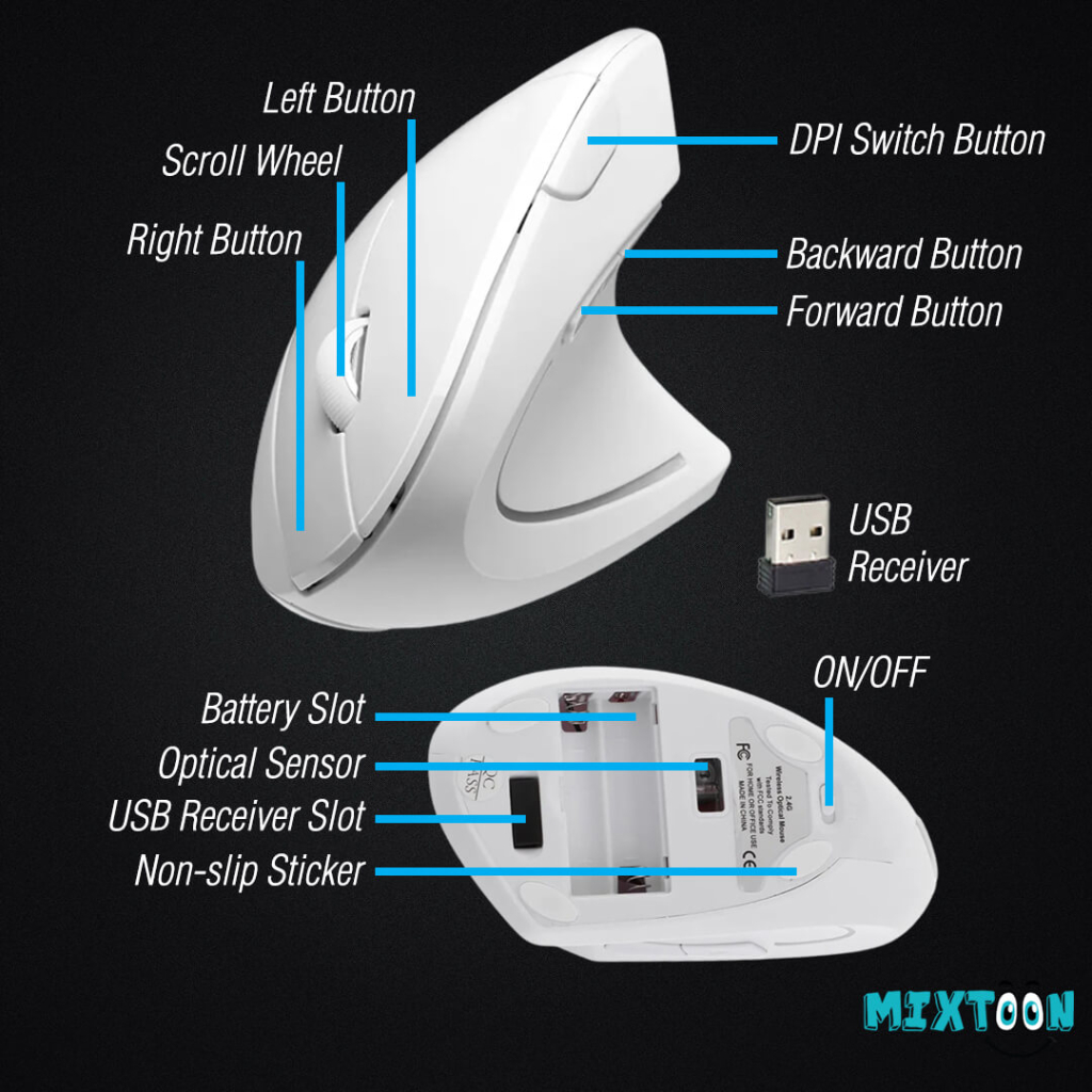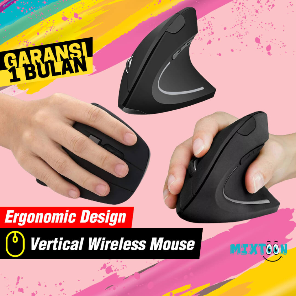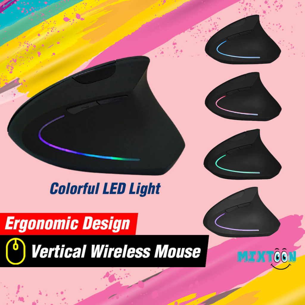 V106 Mouse Wireless Vertical Ergonomic Mouse Gaming Vertikal LED RGB Wireles Ergonomis Untuk PC Laptop Komputer