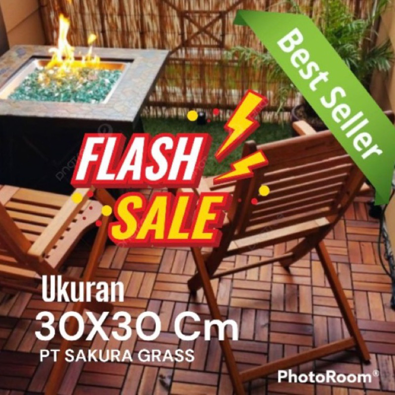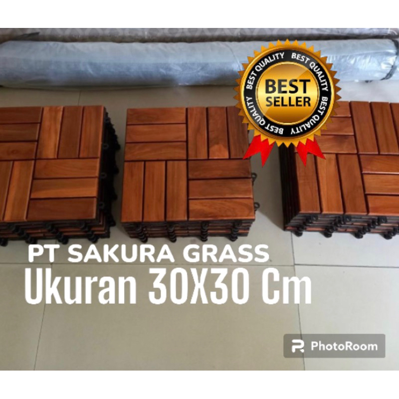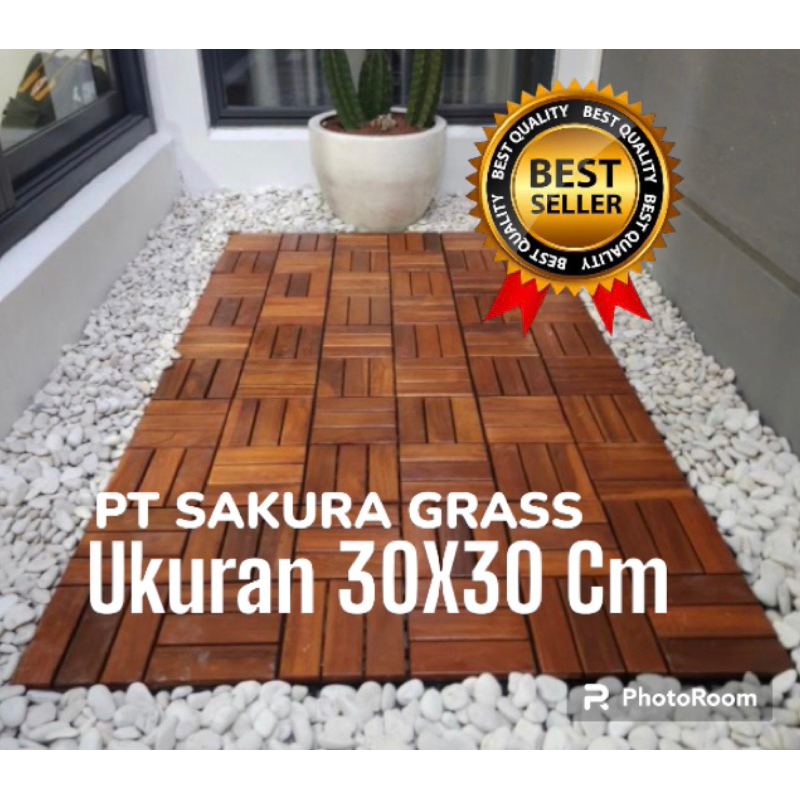 GROSIR LANTAI KAYU - DECKING TILE KAYU JATI UKURAN 30X30 CM TERLARIS BUAT TAMAN