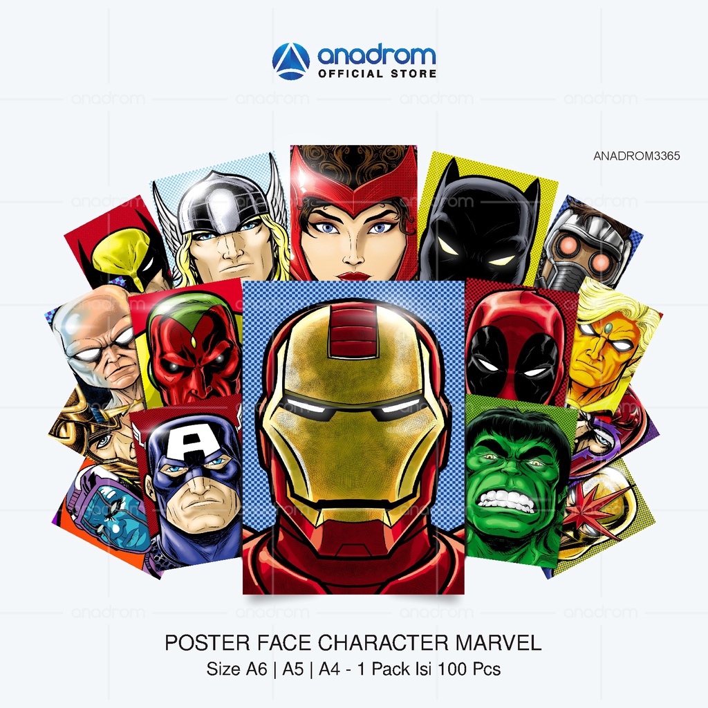 Poster Face Marvel Character | Poster Wajah Marvel Supergero |Size A6 - A5 - A4 1 Pack Isi 40 Pcs | Anadrom 3365