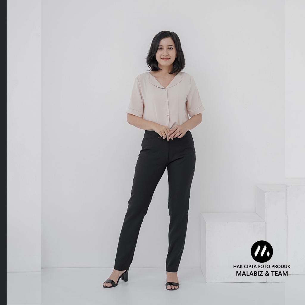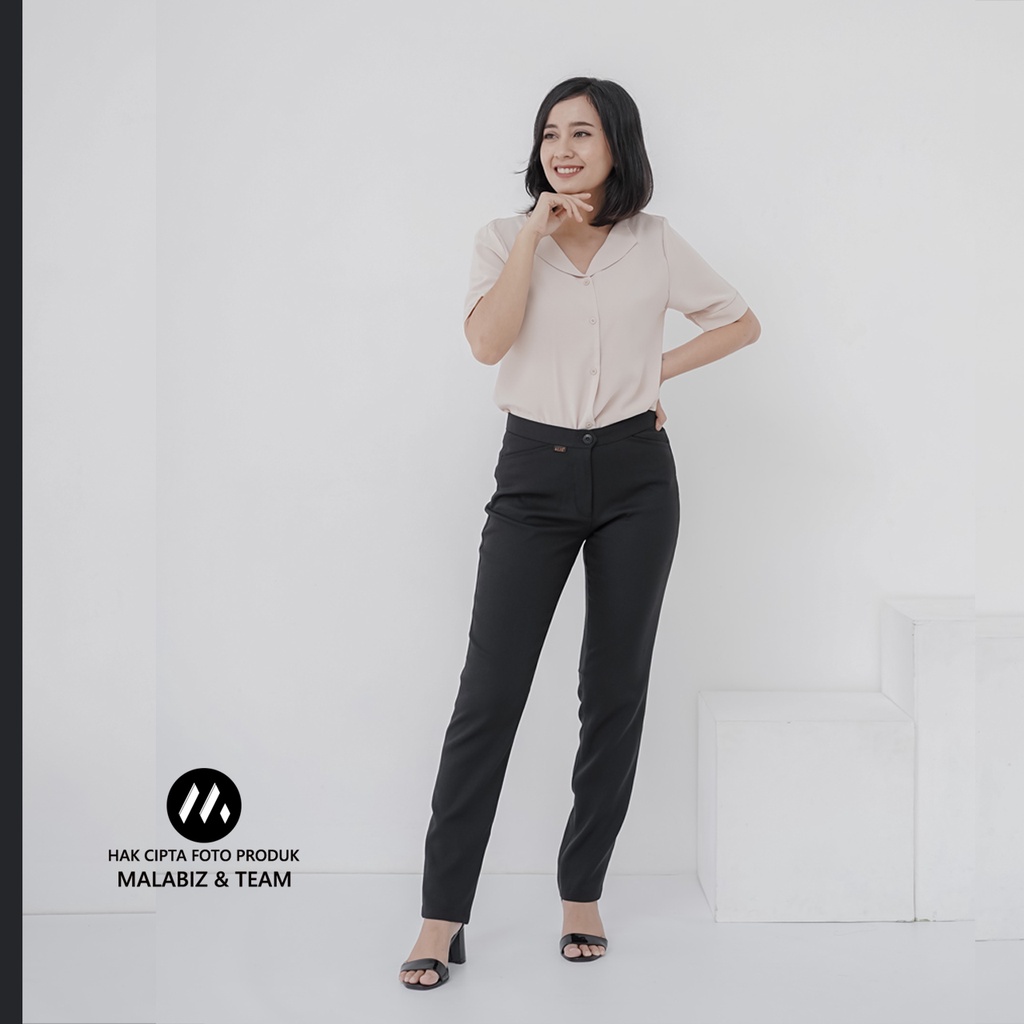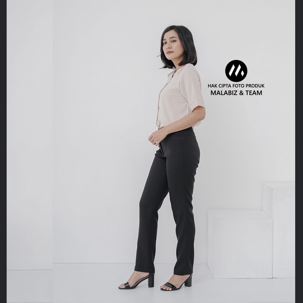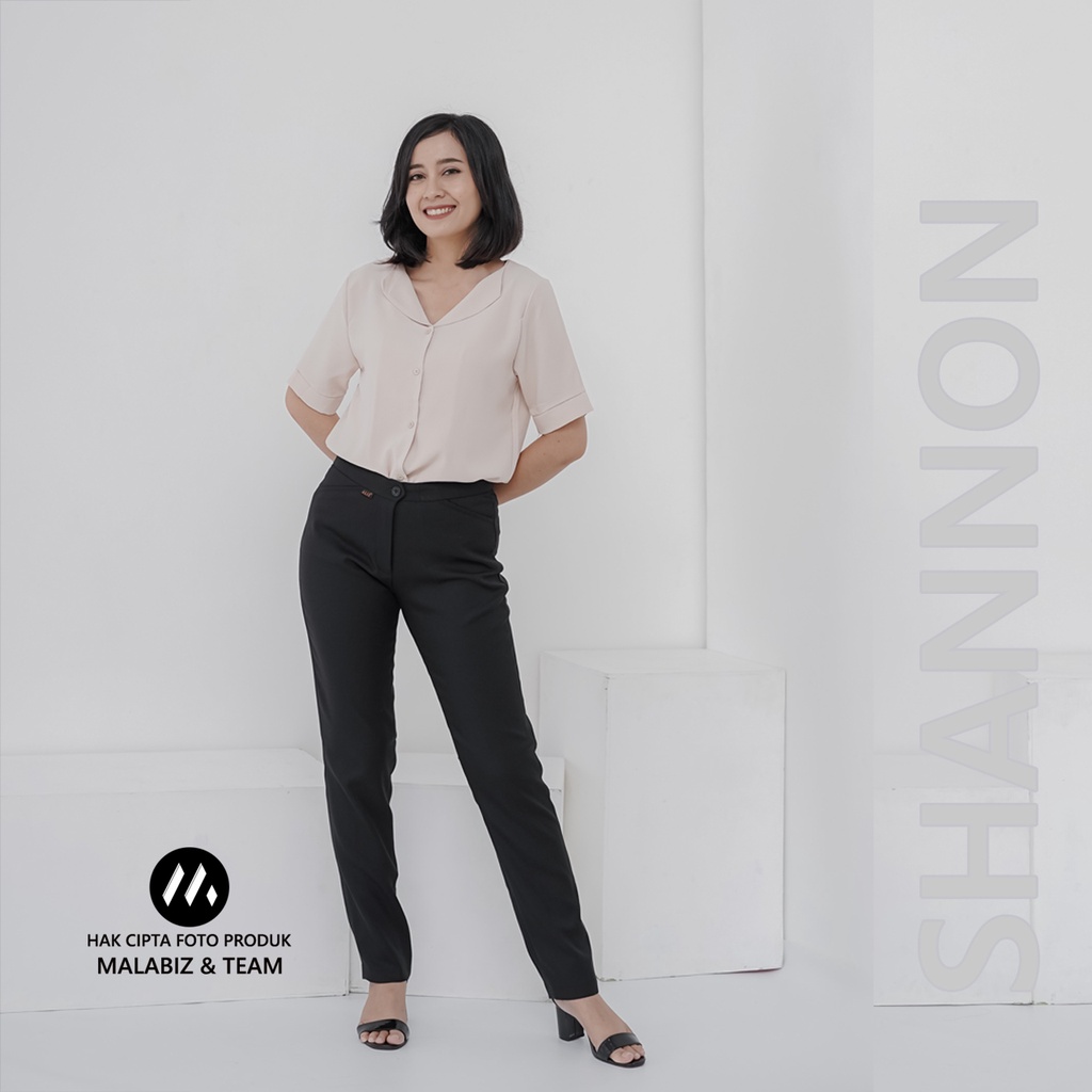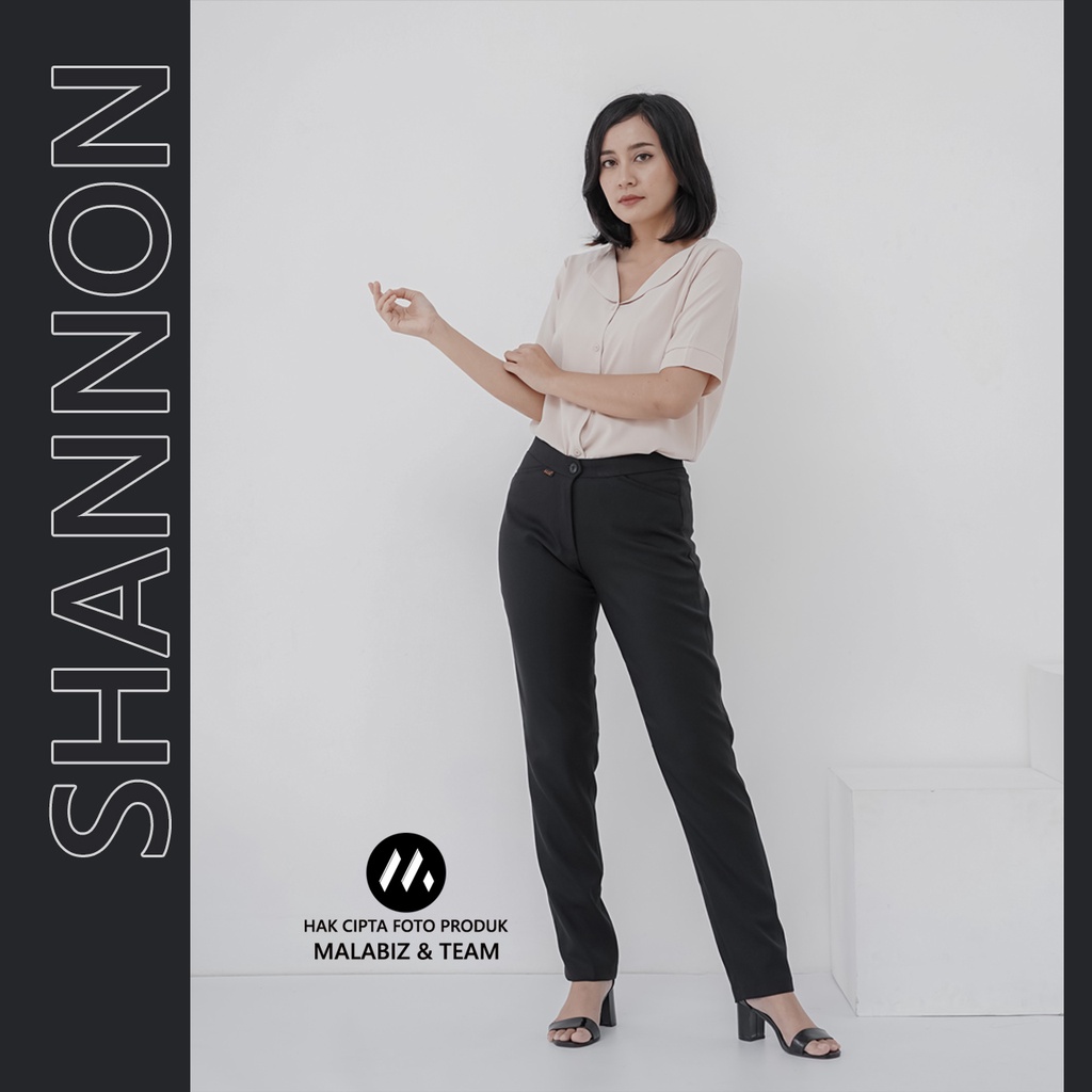 SHANNON BLCK - Celana Kantor Wanita Slim Fit Bahan Stretch dan Tebal Celana Formal Wanita Celana Panjang wanita Hitam Celana Dasar Wanita Basic Standar Kerja Malabiz