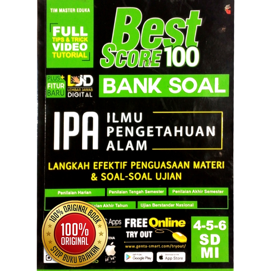 Buku Best Score 100 – Bank Soal IPA SD/MI Kelas 4, 5, 6 | Langkah Efektif Menguasai Materi & Soal Ujian IPA Lengkap + Try Out Online