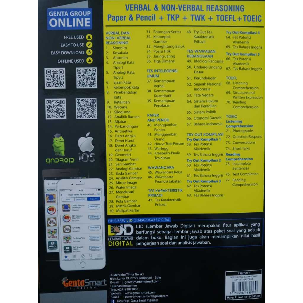 Buku Upgrade Panduan Sukses Psikotes Smart Aplikasi Lolos Psikotes CPNS, BUMN, Bank, TNI–Polri & Kerja dengan Strategi Cerdas | Panduan Terlengkap Psikotes Verbal, Numerik, Logika, Gambar, TKP, TWK, TOEFL & TOEIC + Smart Aplikasi Digital