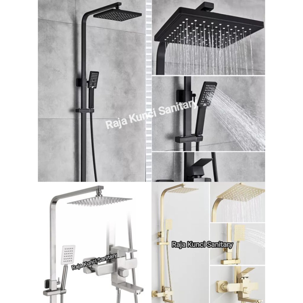 Shower Tiang Column Kotak/Shower Set Panas Dingin Stainless SUS 304 Hitam/Black/Kuningan