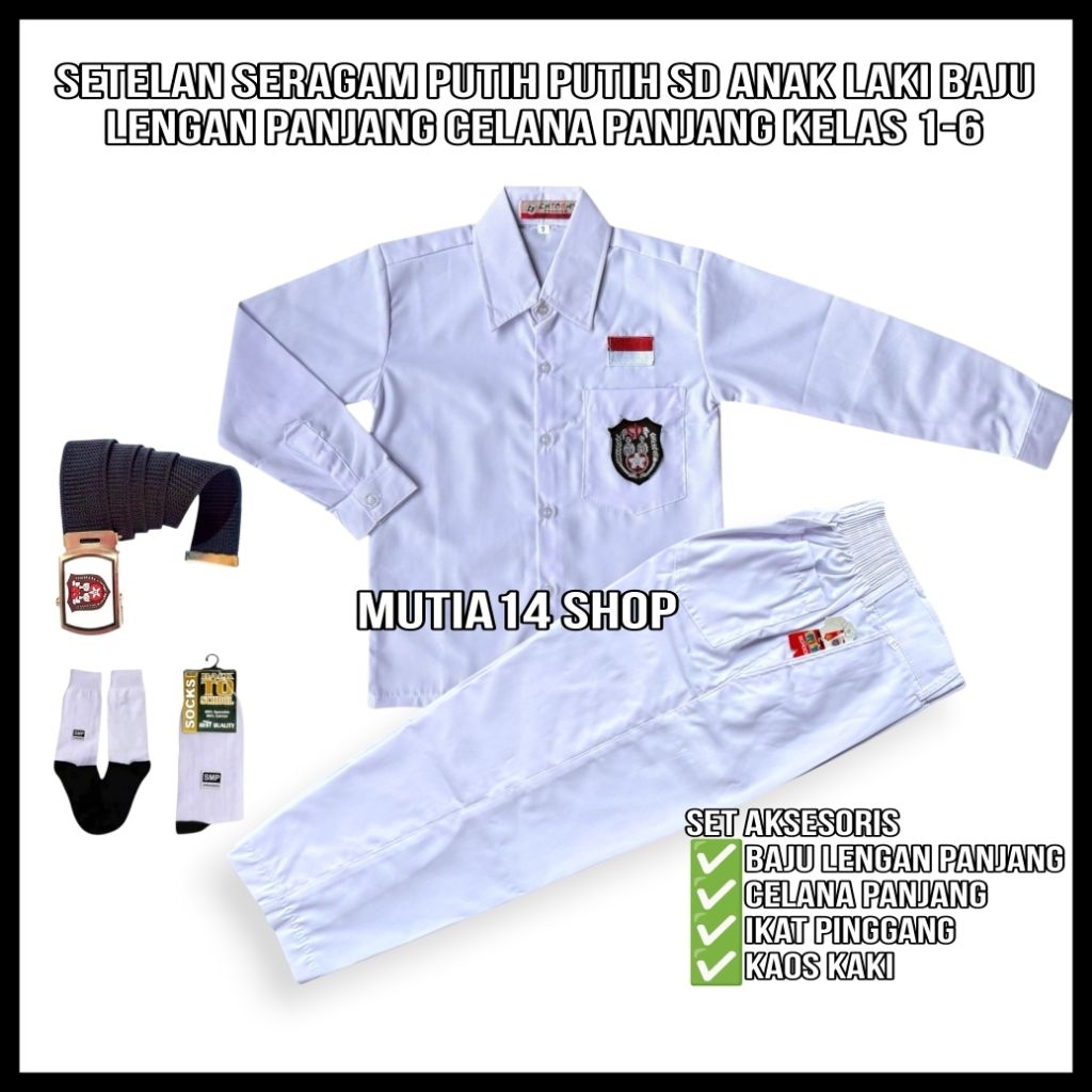 setelan seragam sekolah putih Putih SD anak laki laki baju putih betd lengan panjang rok putih panjang kelas 1-6