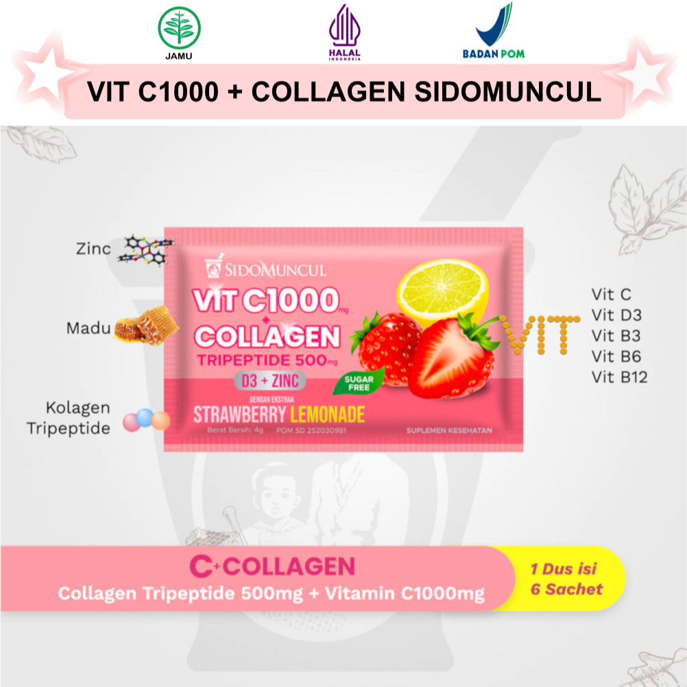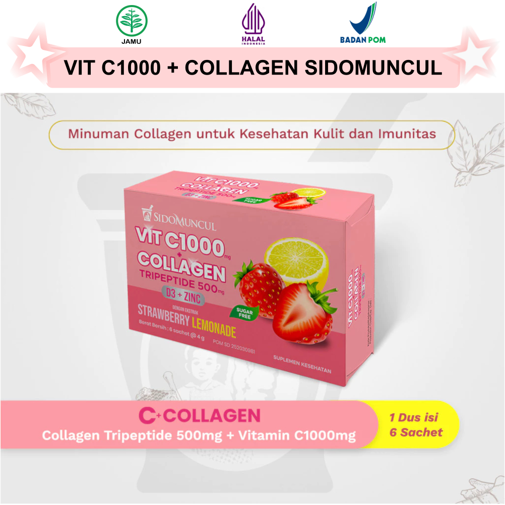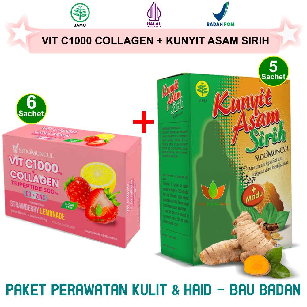 PAKET SUPLEMEN KOLAGEN SIDOMUNCUL COLLAGEN TRIPEPTIDE VITAMIN C 1000MG & JAMU KUNYIT ASAM SIRIH SIDO MUNCUL