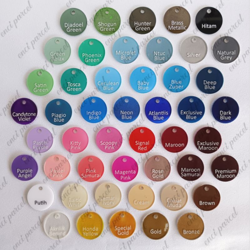 kode 148 akrilik bulat lingkaran brush custom warna tulisan timbul gold silver hitam putih hiasan mahar