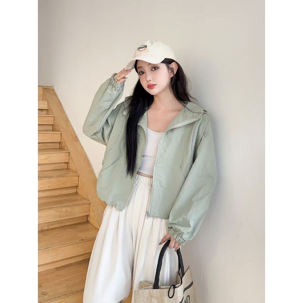 Jaket Parasut Wanita Premium Korean Style Kekinian Jaket Hoodie Parasut