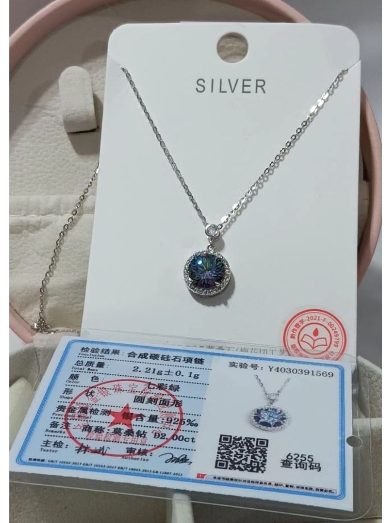 kalung moissanite / mosang OSD aurora 2 CT perak 925 beratnya 2.21 gram