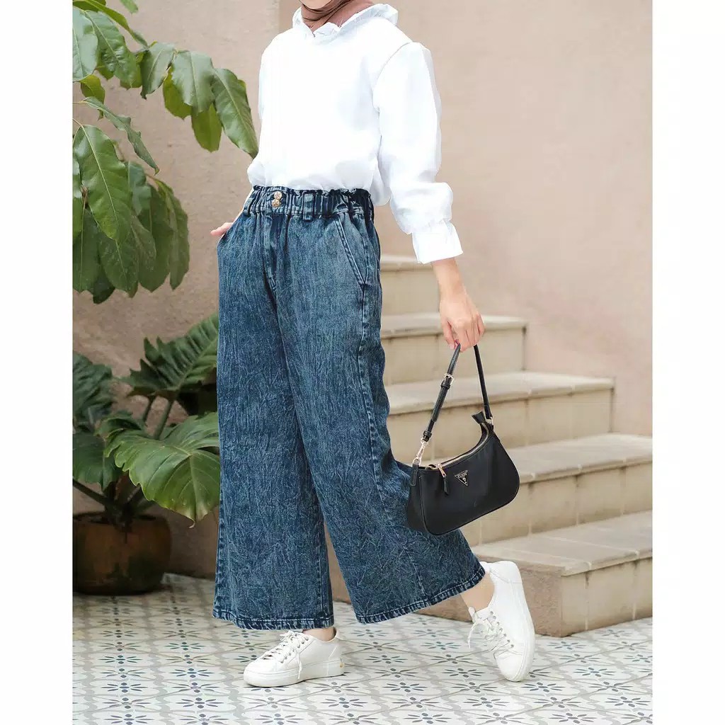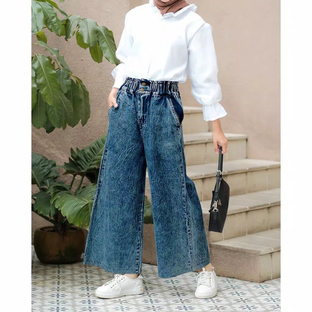 celana jeans wanita kulot kekinian snow - nona jeans cullote