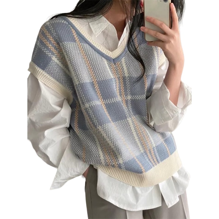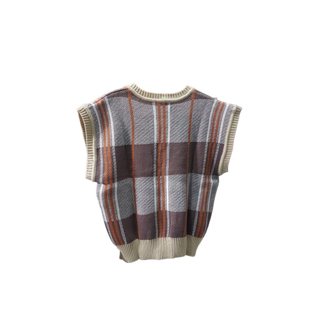 Tartan Vest Oversize Unisex Rompi Rajut Acy Wool Halus Premium Tebal Motif Kotak Kotak