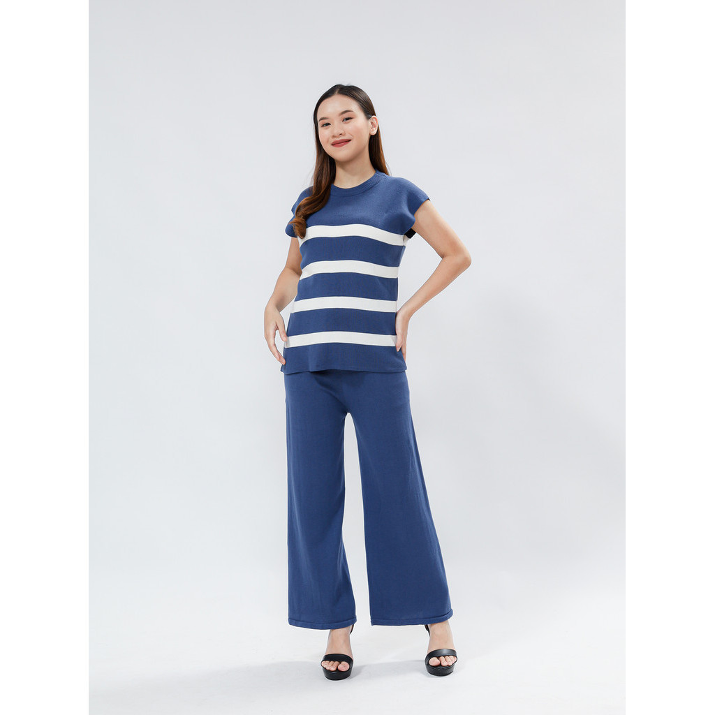 One Set Setelan Baju Celana Rajut Wanita Top Blouse Pants Knit Bahan Katun Cotton Elena Set