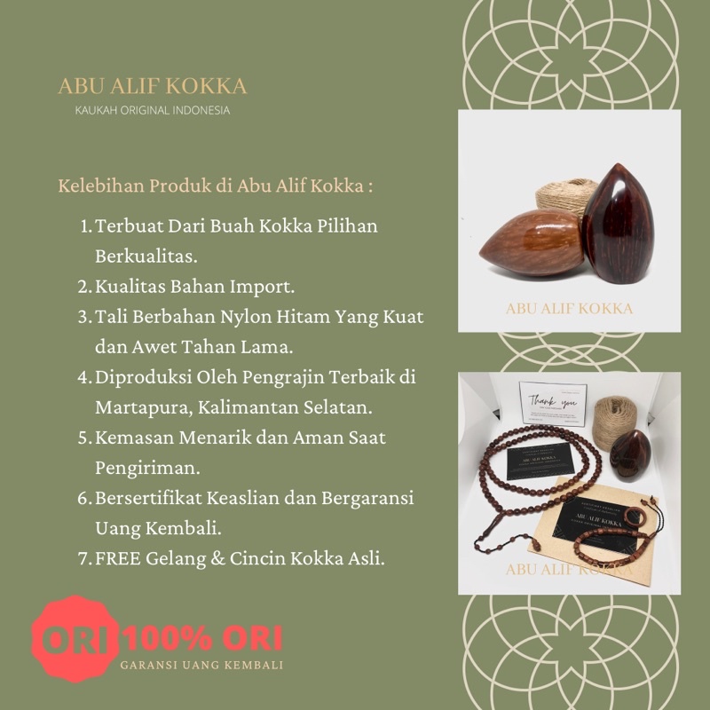 PREMIUM QUALITY TASBIH KOKKA 6MM ASLI BERSERTIFIKAT TASBIH KAOKAH ASLI GRATIS GELANG KAOKAH BERGARANSI TASBIH KAUKAH BANDUL BULAN BINTANG