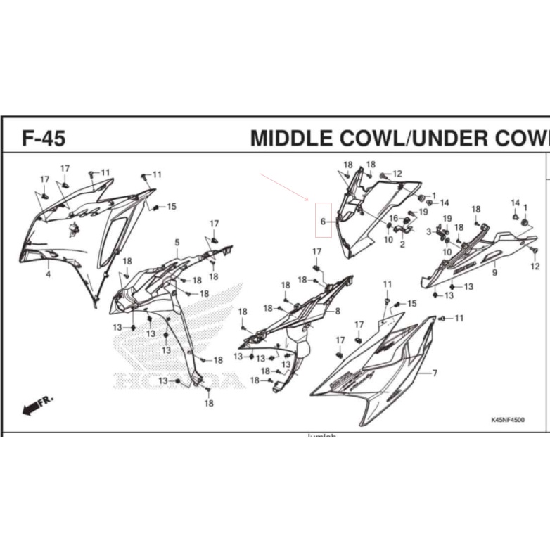 64341K45NL0ZE COWL COMP R UNDER (BLK) - Cover Penahan Lumpur Bawah Kanan CBR 150R K45R 2021