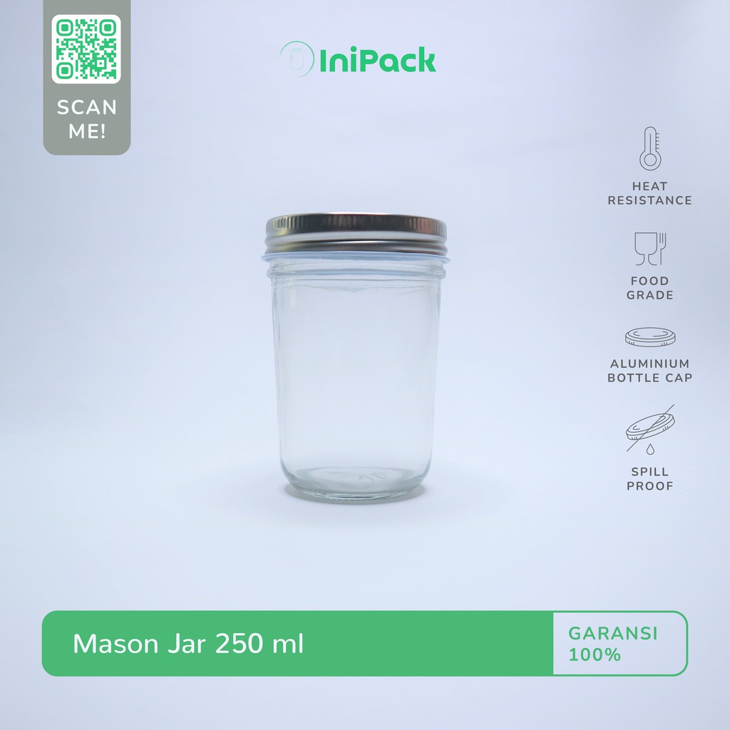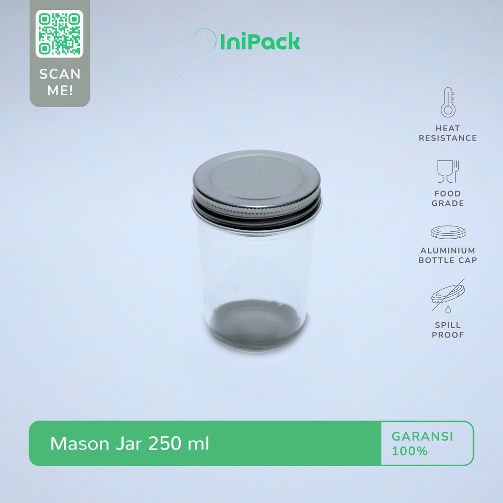 Toples Jar Kaca 250 ML (tinggi) / Mason Jar Kaca 250ml Tutup ALUMINIUM