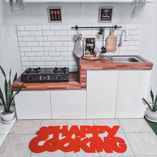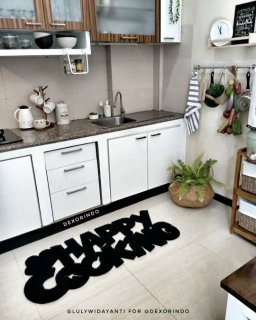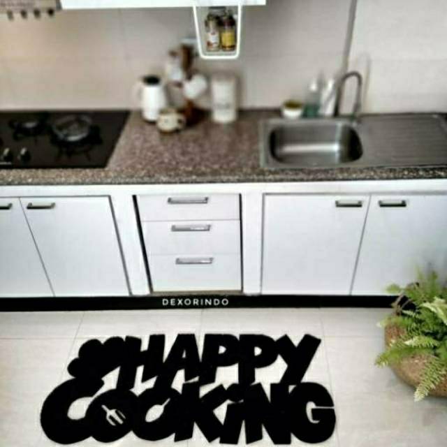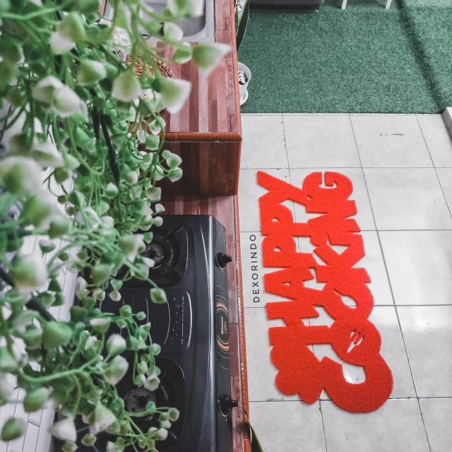 DEXORINDO Keset Happy Cooking Jumbo - Keset Karakter Tulisan Happy Cooking Size Besar - Keset Dapur