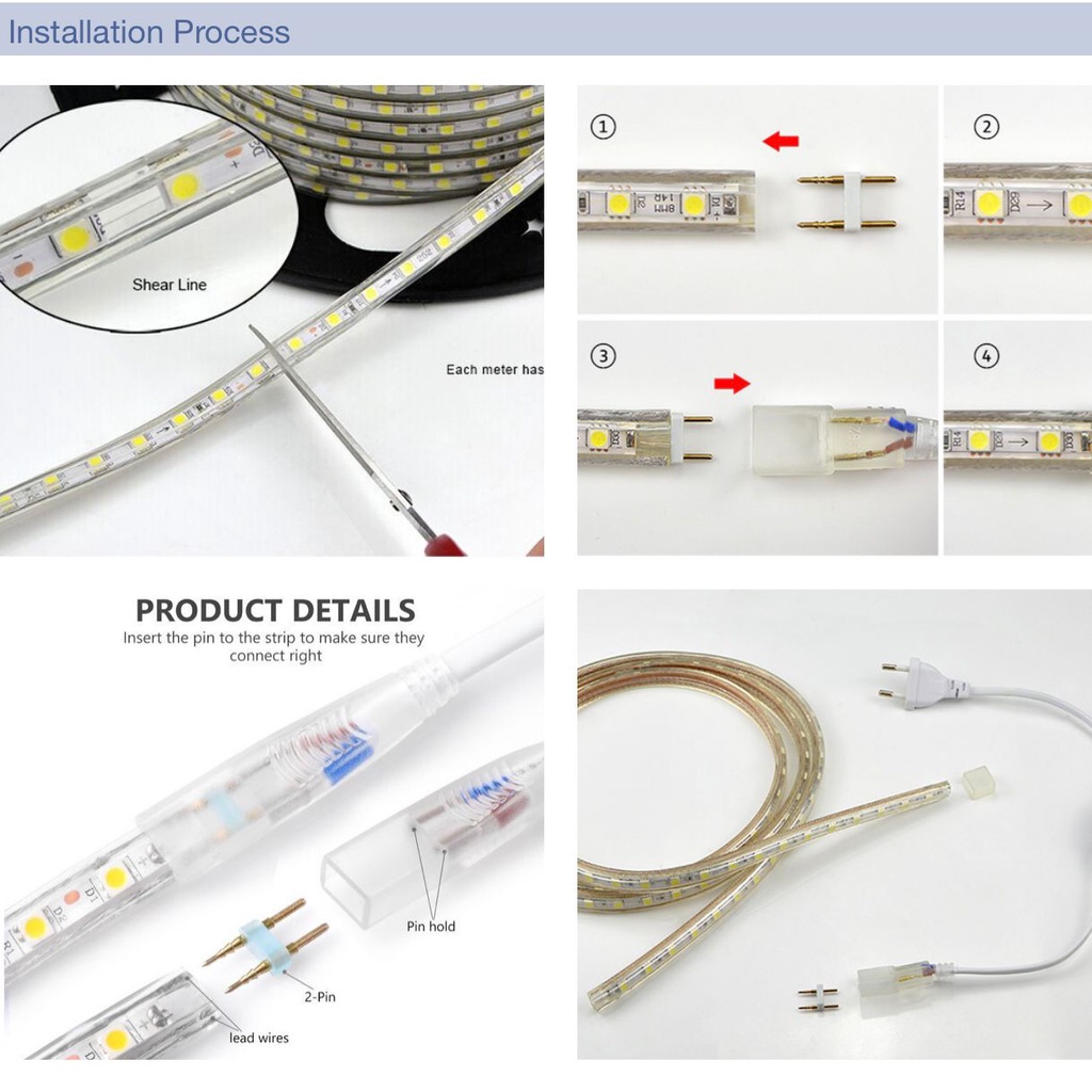 Lampu LED Strip SMD 2835 120LED 180LED AC 220V PER METER Super Terang